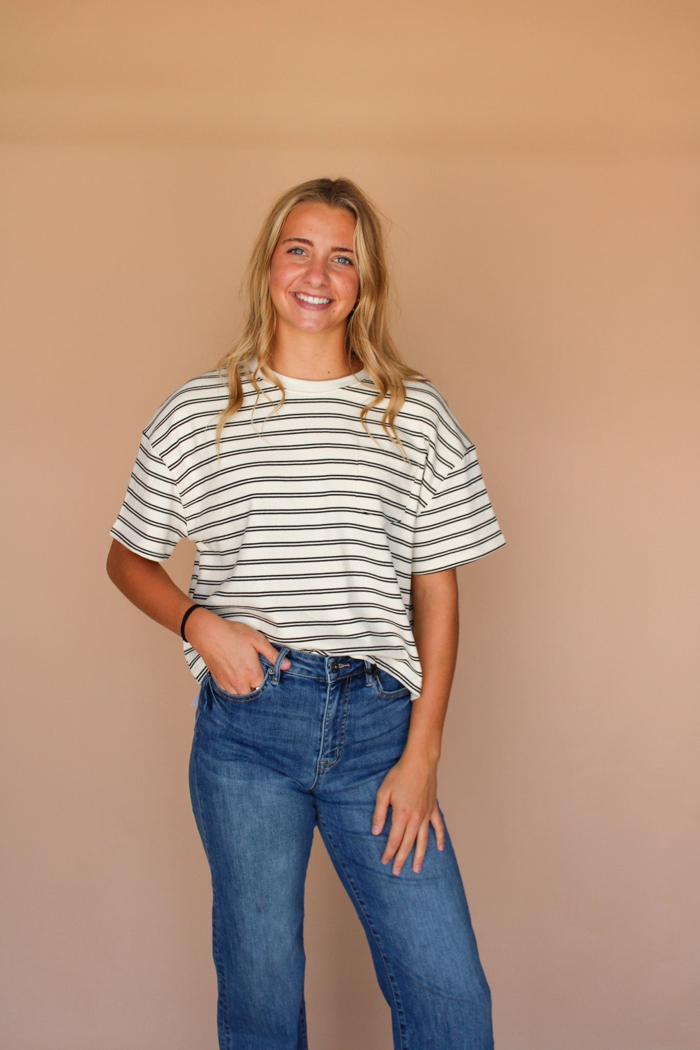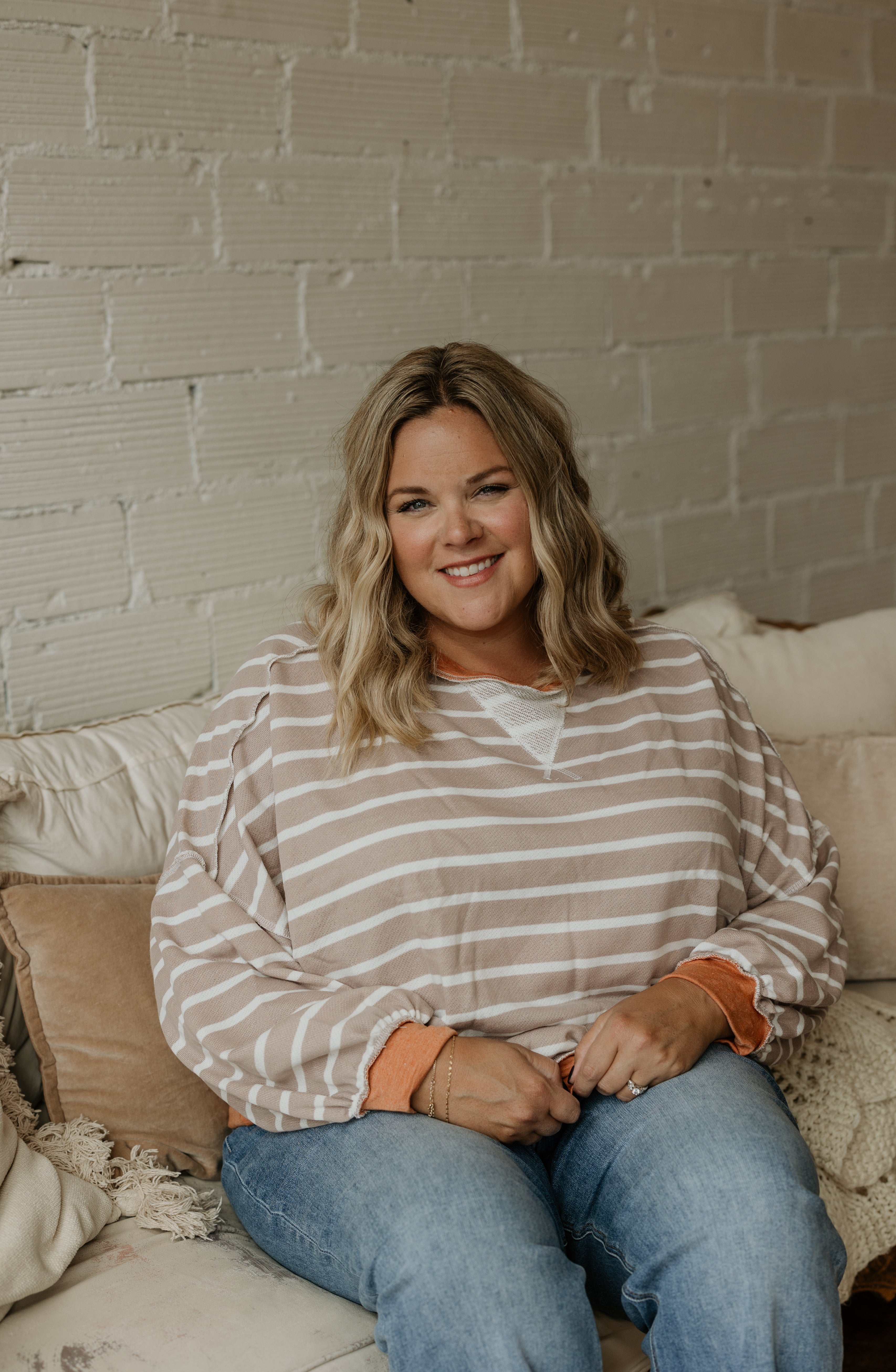 KAYSHA REG/CURVY DROP SHOULDER STRIPED SWEATSHIRT