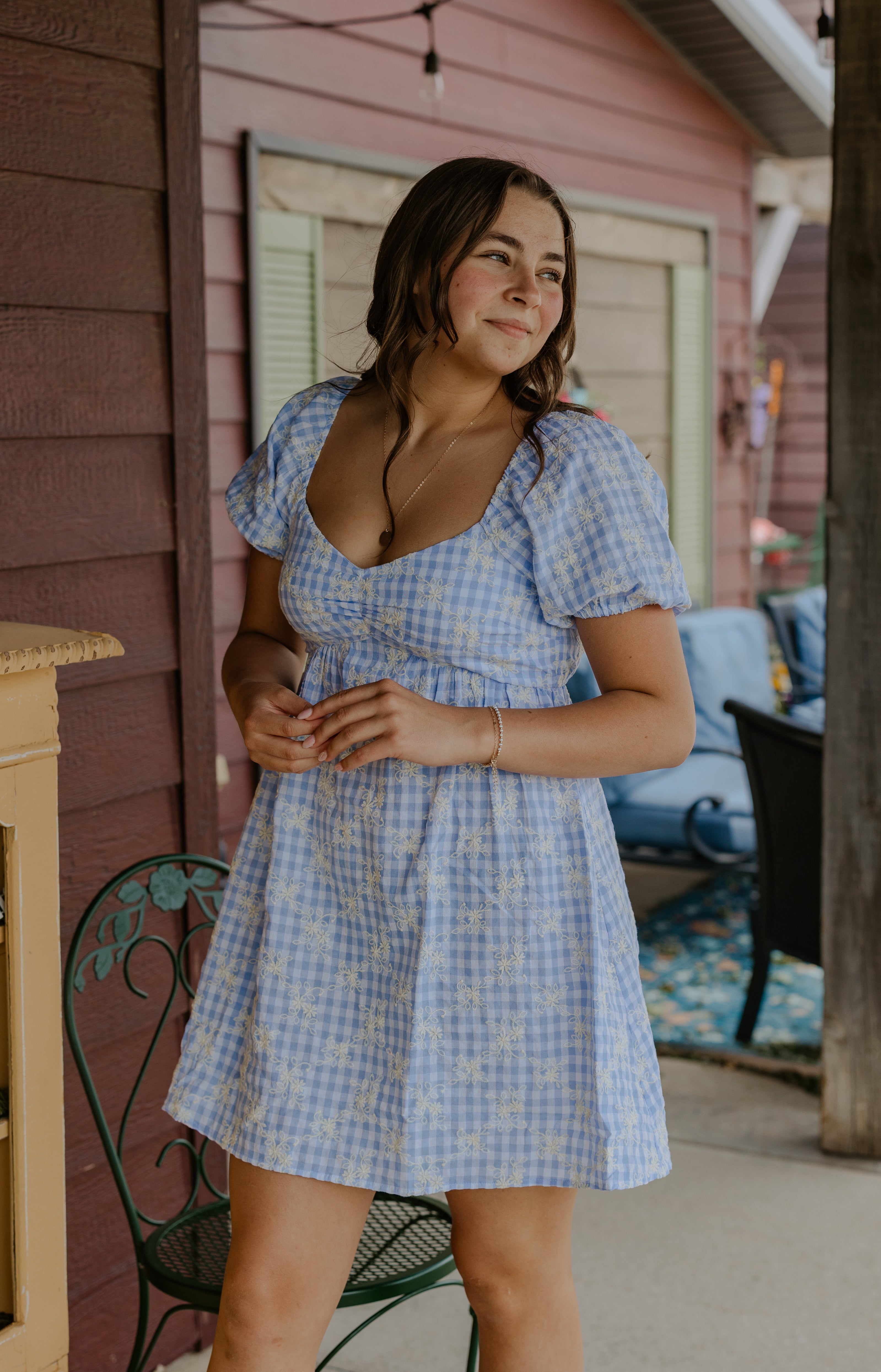 DAISY EMBROIDERED GINGHAM MINI DRESS