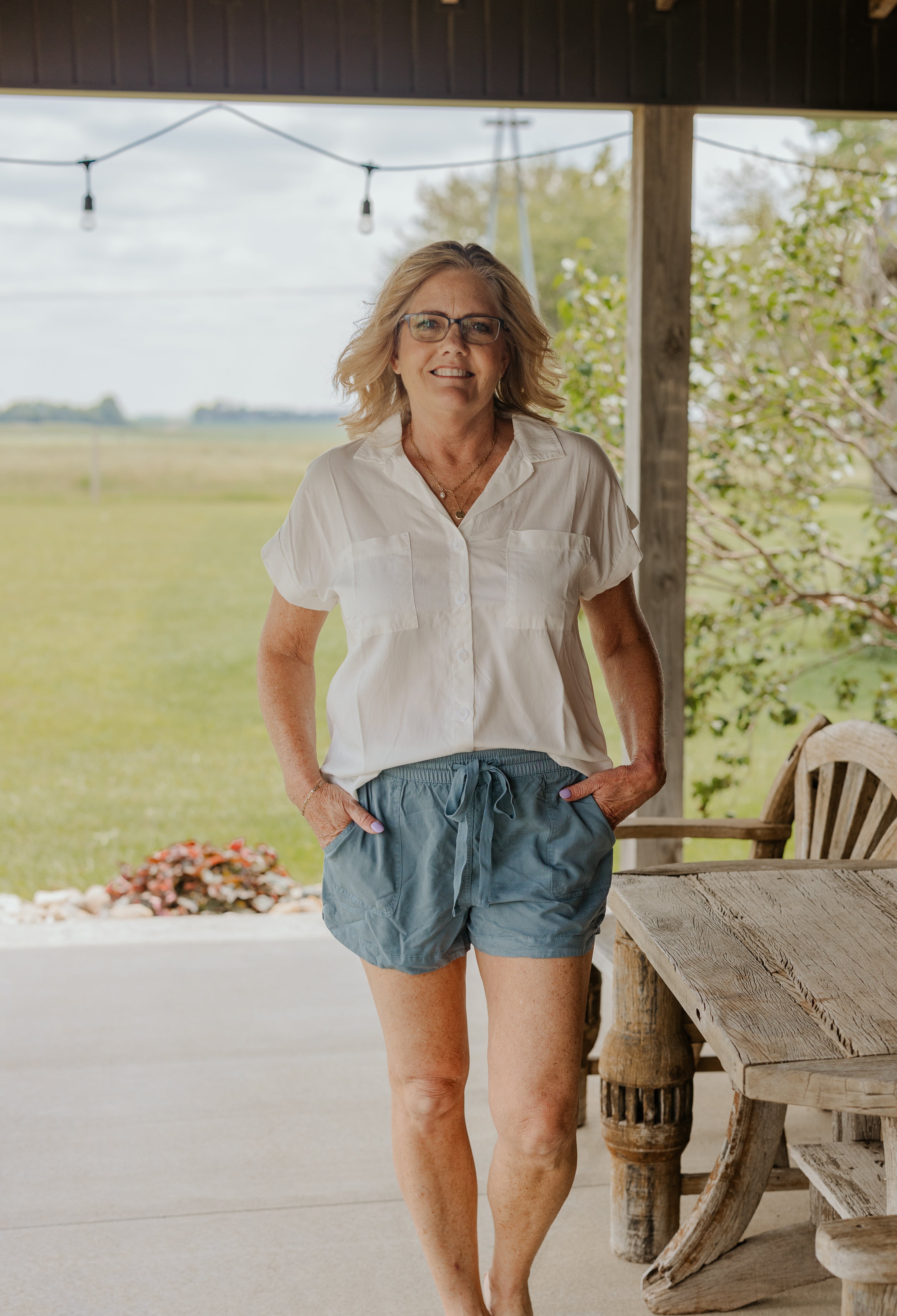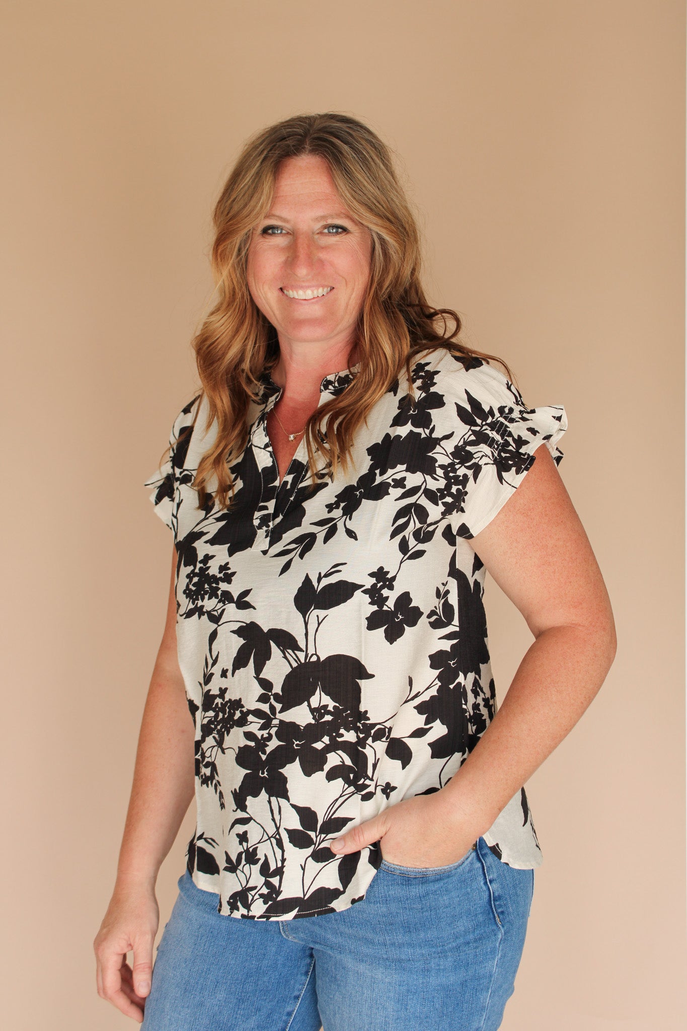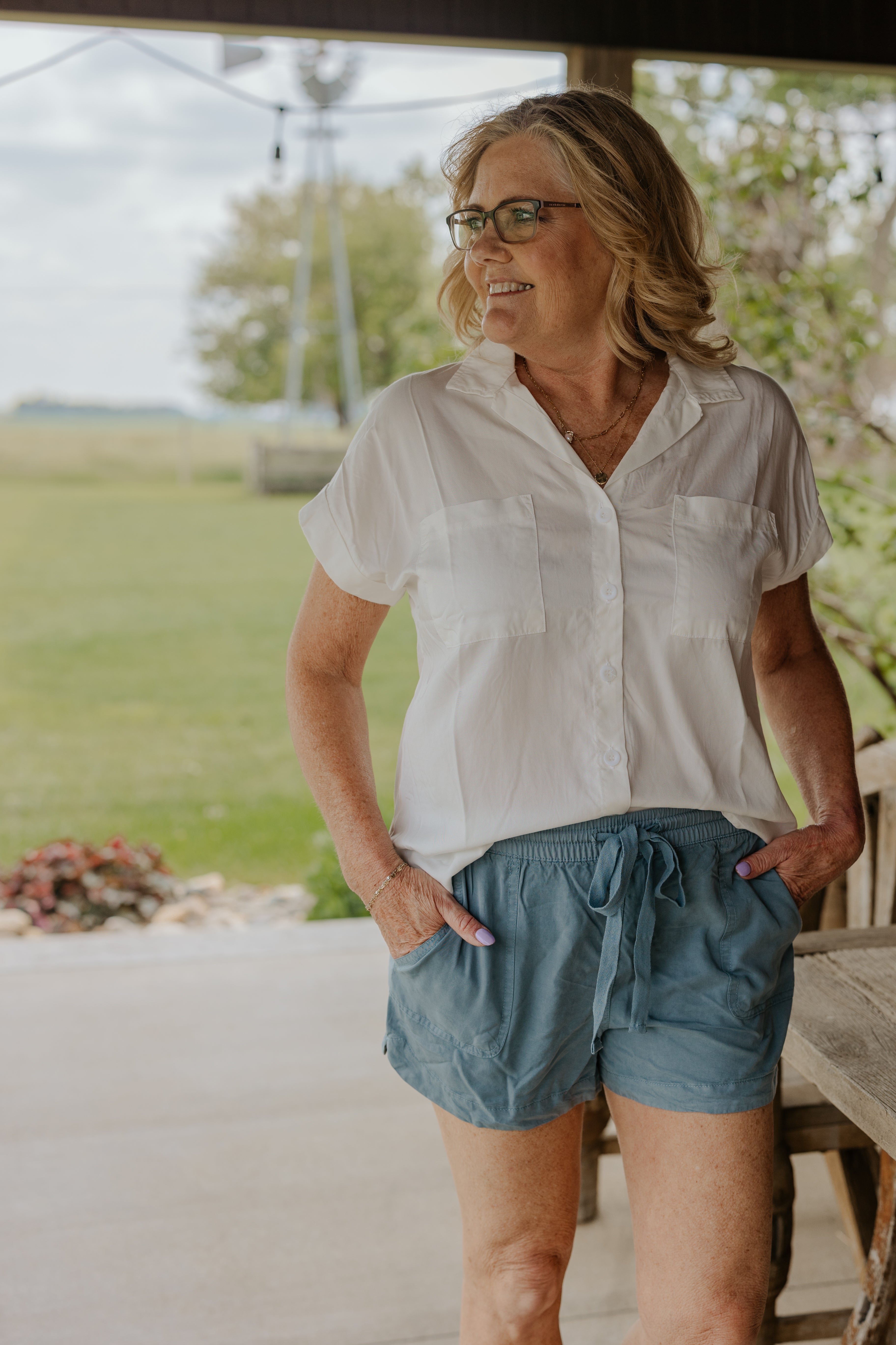 SUMMER BUTTON UP CAP SLEEVE TOP