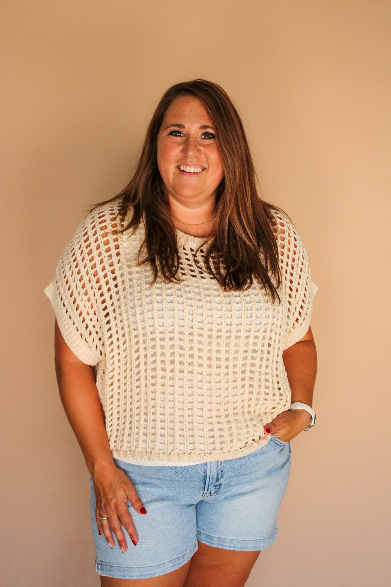 KANDACE CROCHET KNIT CROPPED SWEATER TOP