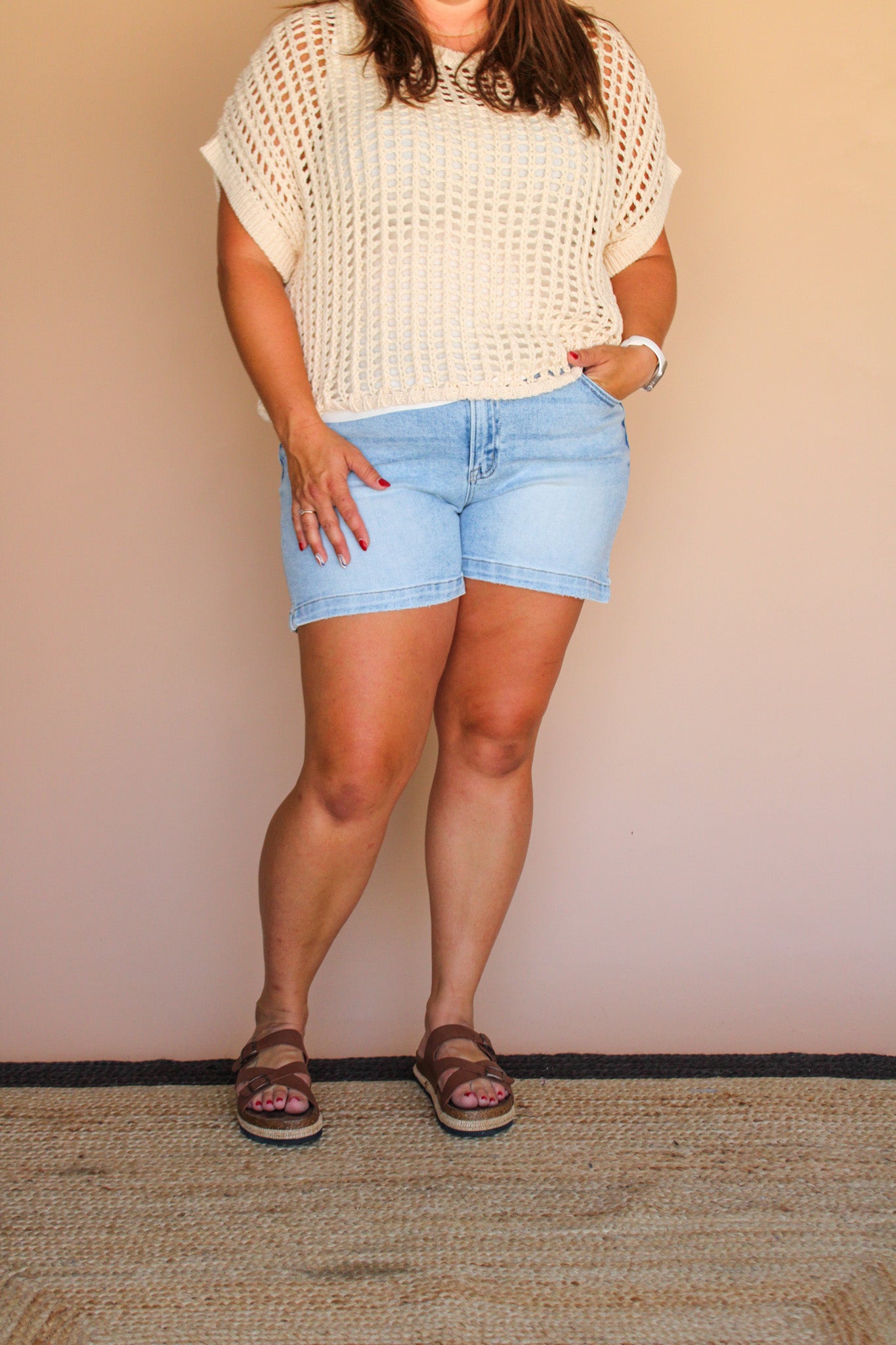 HANNAH HIGH RISE SEAM DETAIL SHORTS