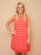 Swing into style with our CHRISTY STRIPED TANK SWEATER DRESS! This flirty flared silhouette is perfect for twirling from brunch to evening adventures. Crafted from a luxurious 80% viscose and 20% nylon blend that feels amazing against your skin while keeping its shape all day. The playful stripes add just the right pop to your wardrobe - dress it up or down for endless outfit possibilities!
