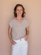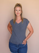 Introducing the LAYLA VNECK HACCI CAP SLEEVE TOP - your new go-to for effortless style! Featuring a flattering v-neckline and extended cap sleeves, this hacci striped top is the perfect blend of comfort and fashion. Elevate your wardrobe with this versatile piece.