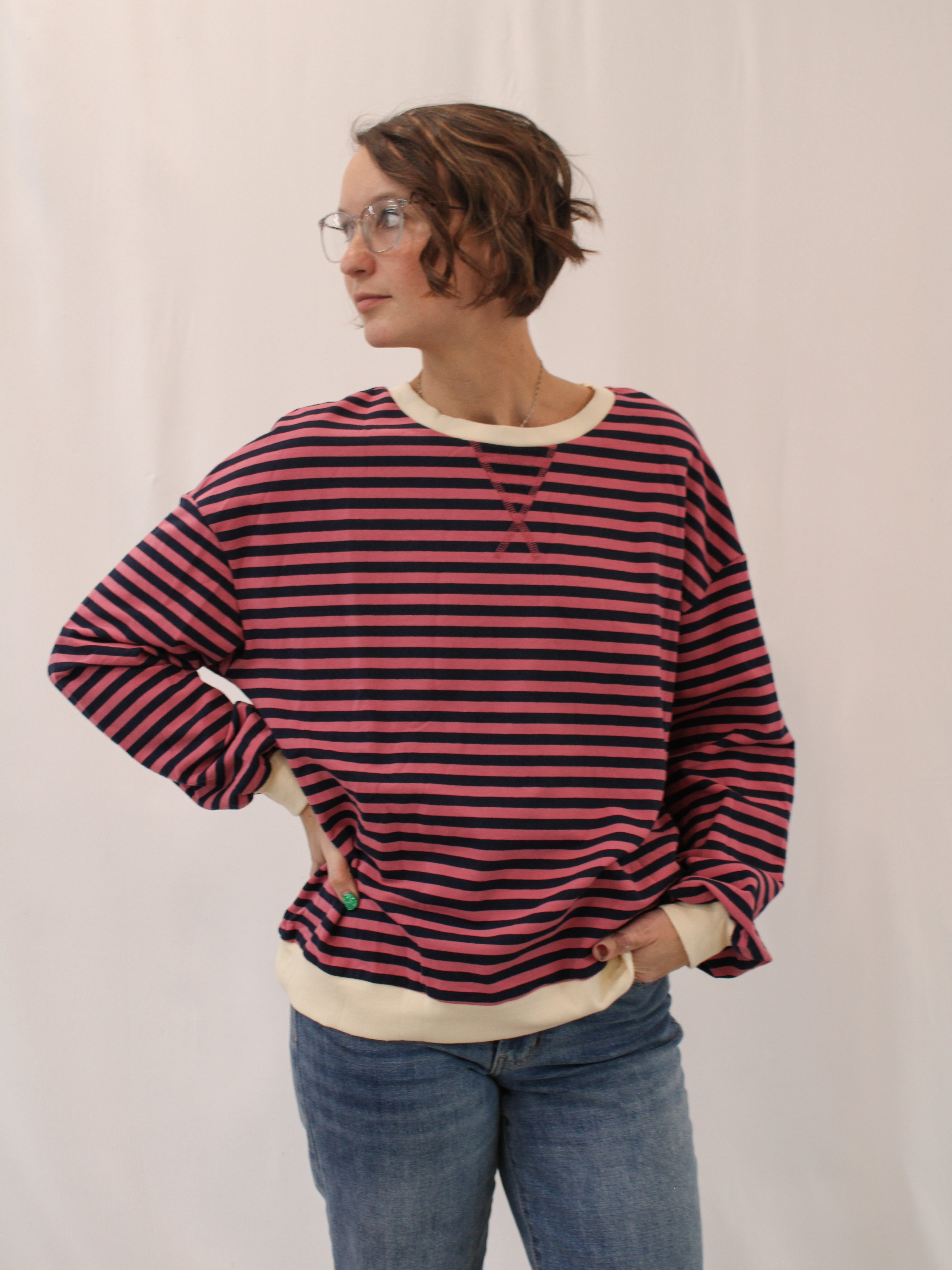 MONA REG/CURVY STRIPED CREWNECK SWEATER