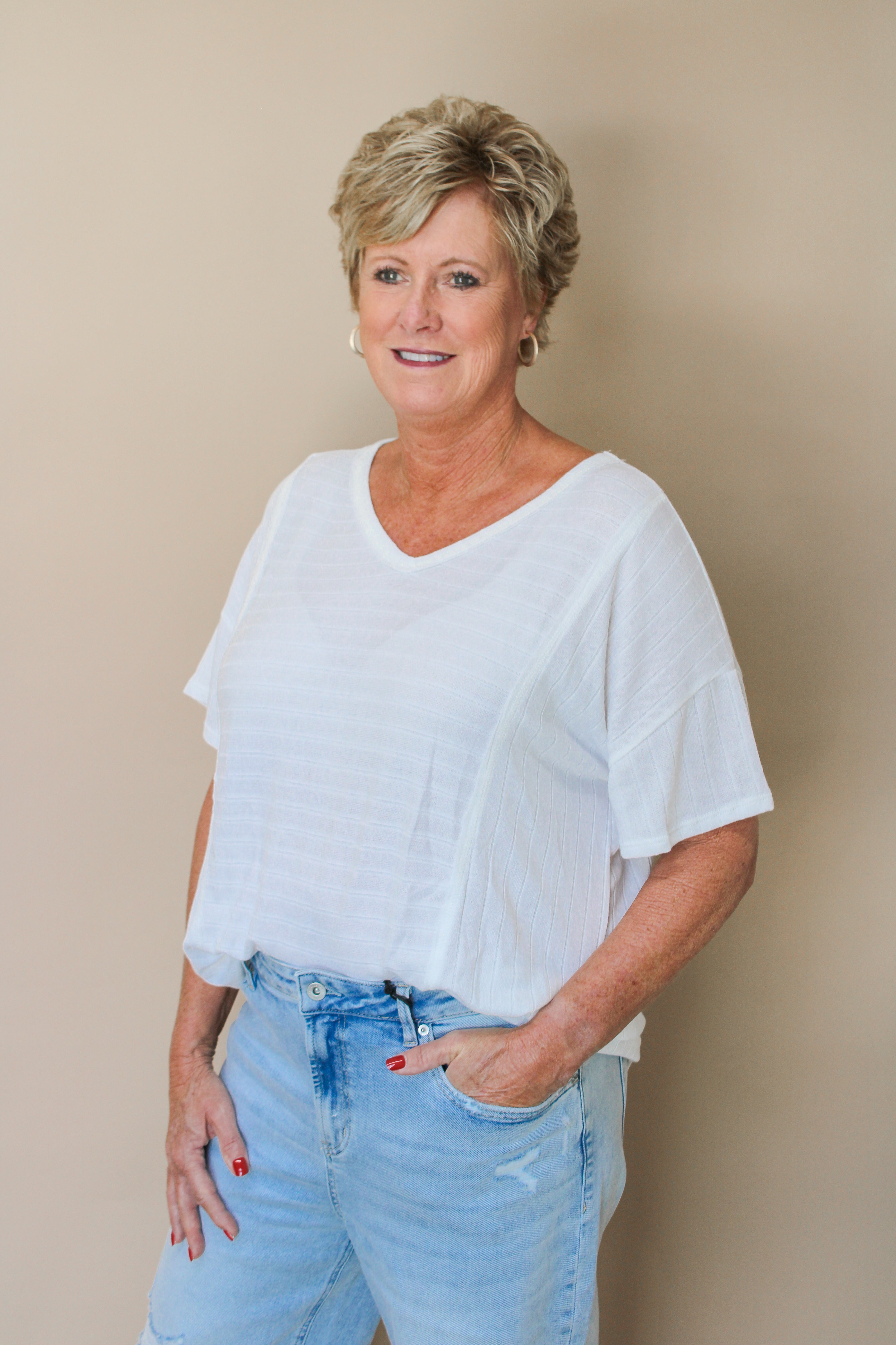 TEAGAN STRIPED SHORT SLEEVE SWEATER