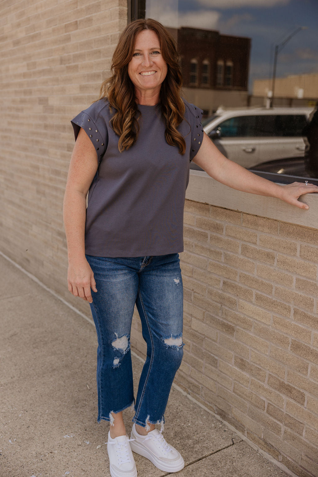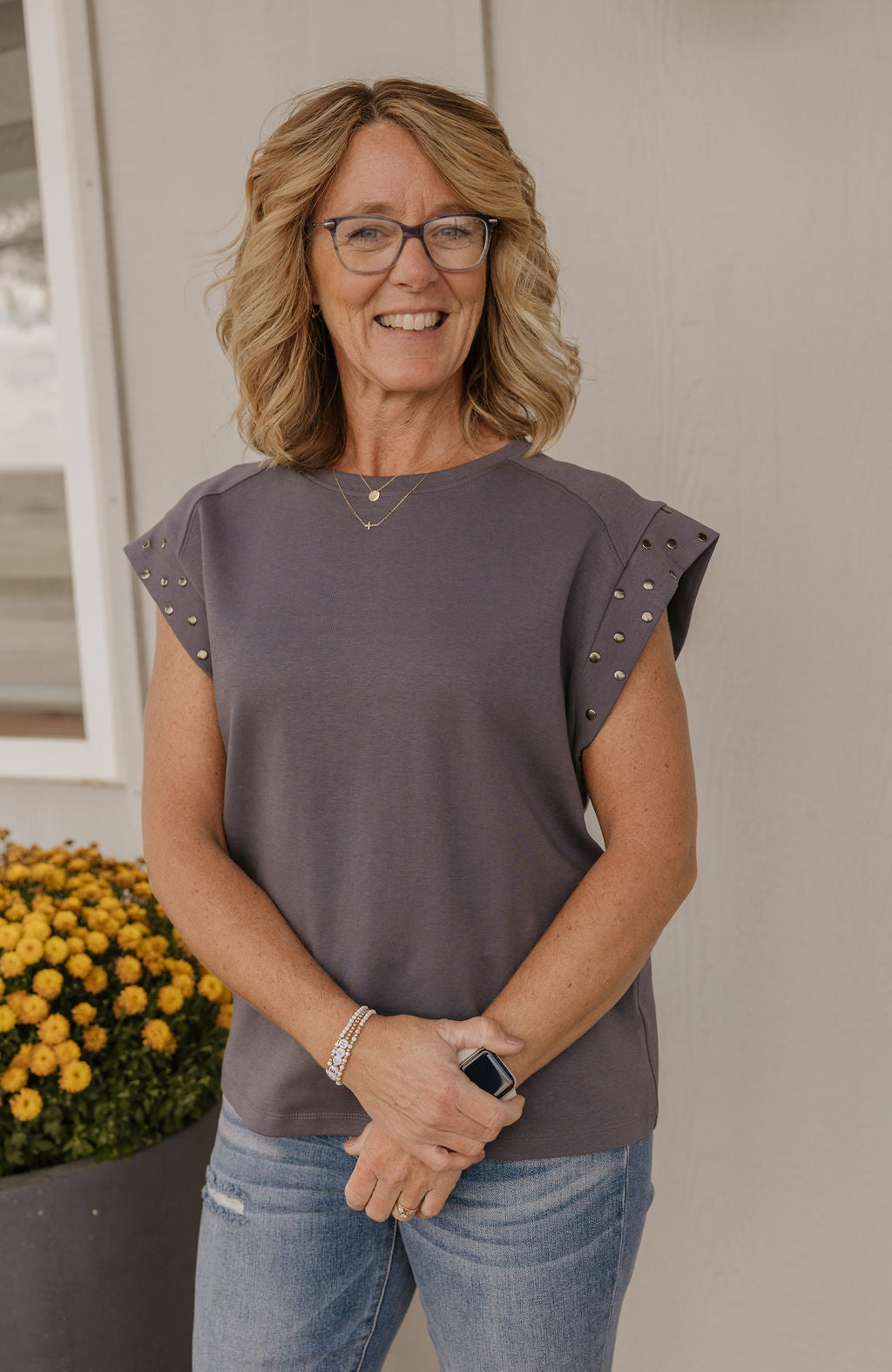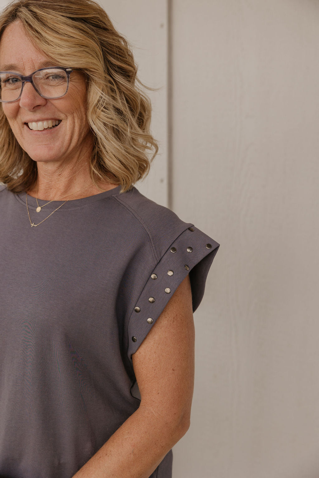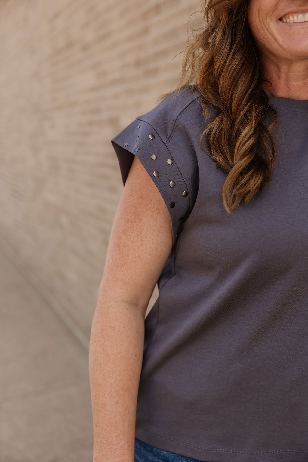 APRIL STUDDED SLEEVE TOP 3 COLOR OPTIONS