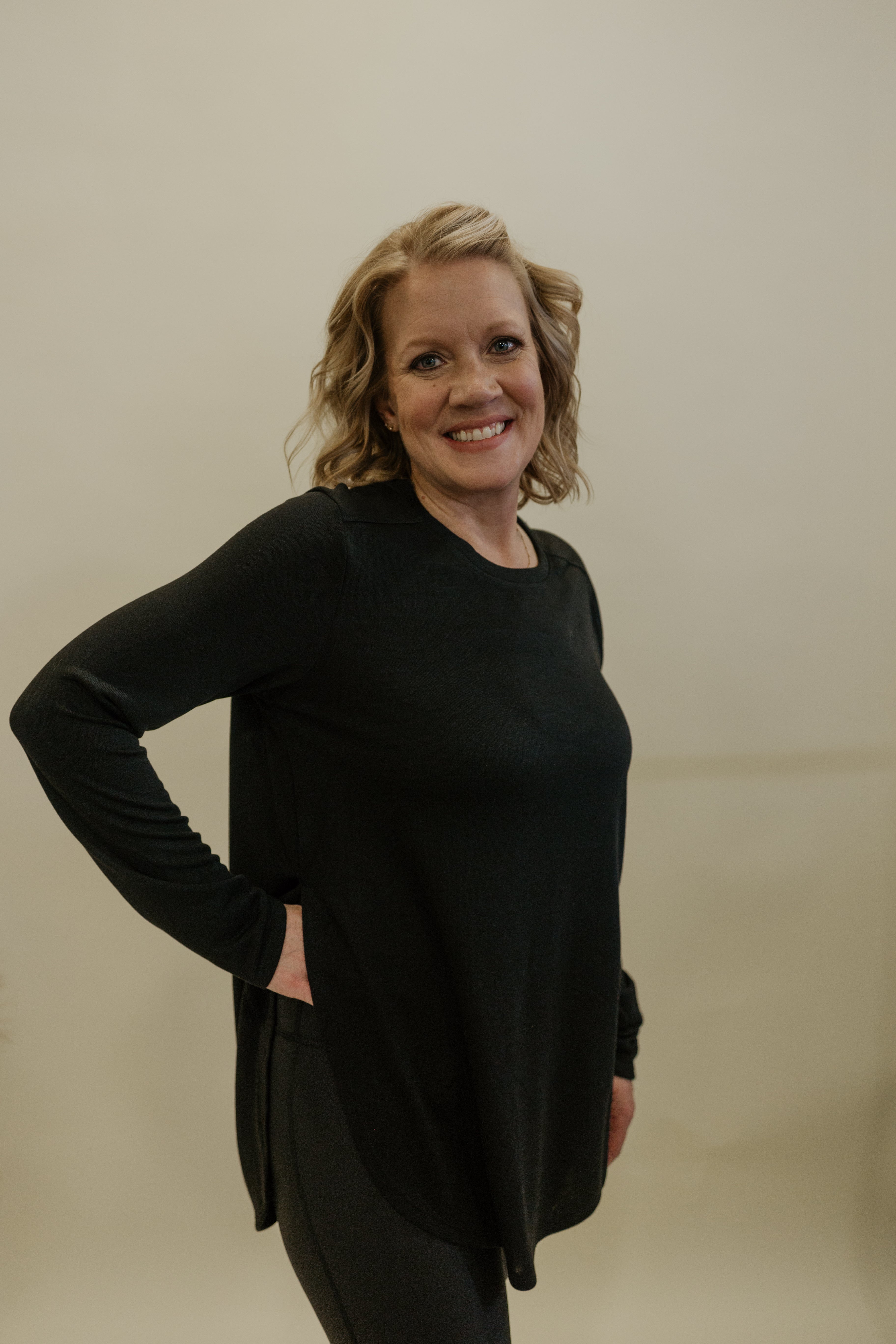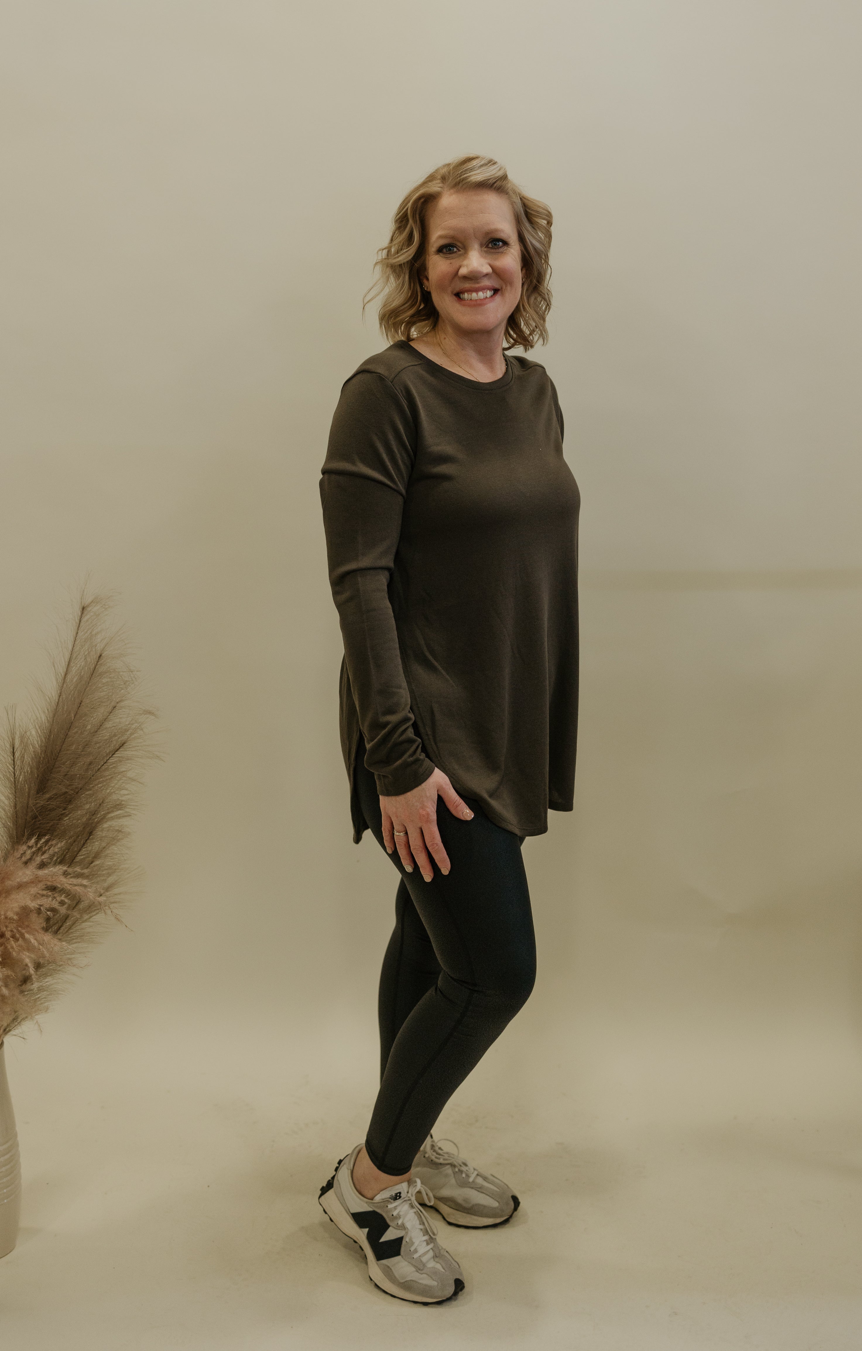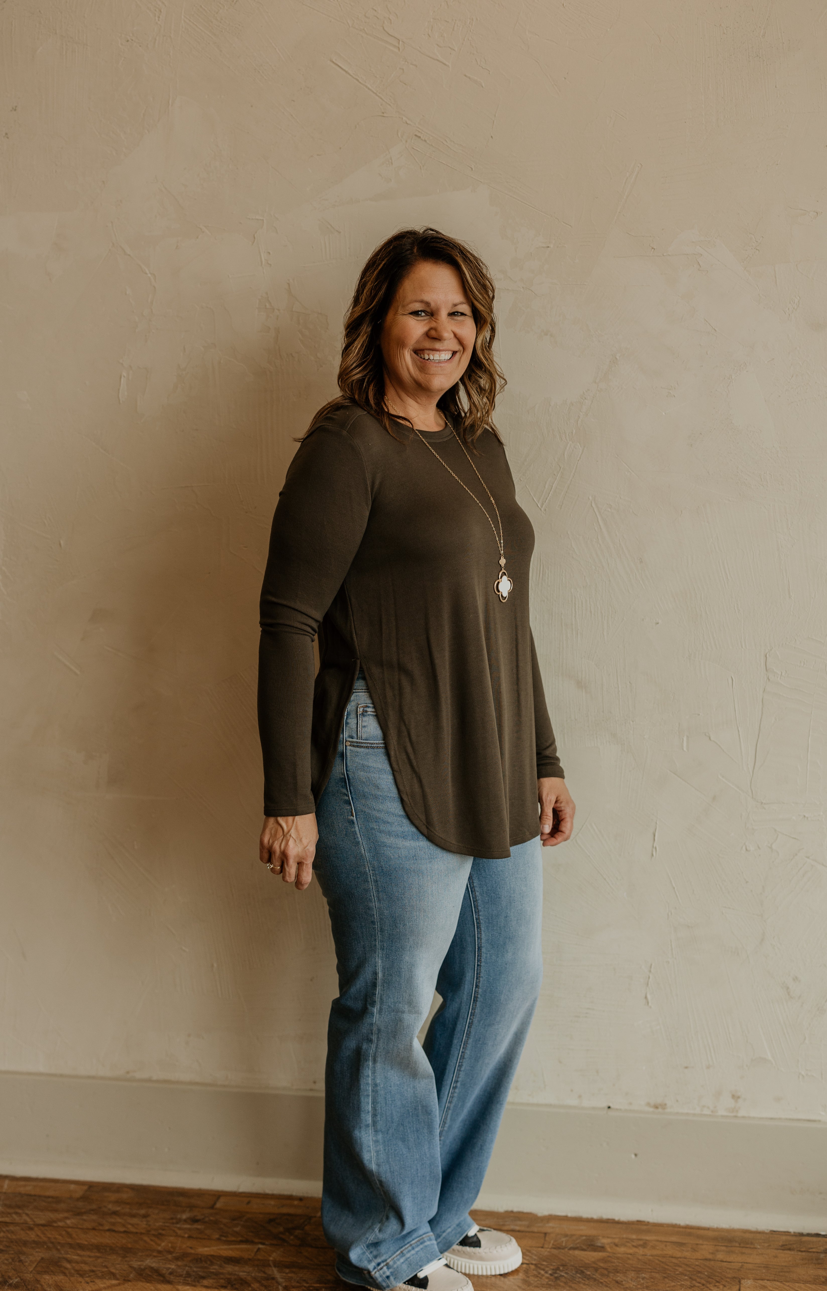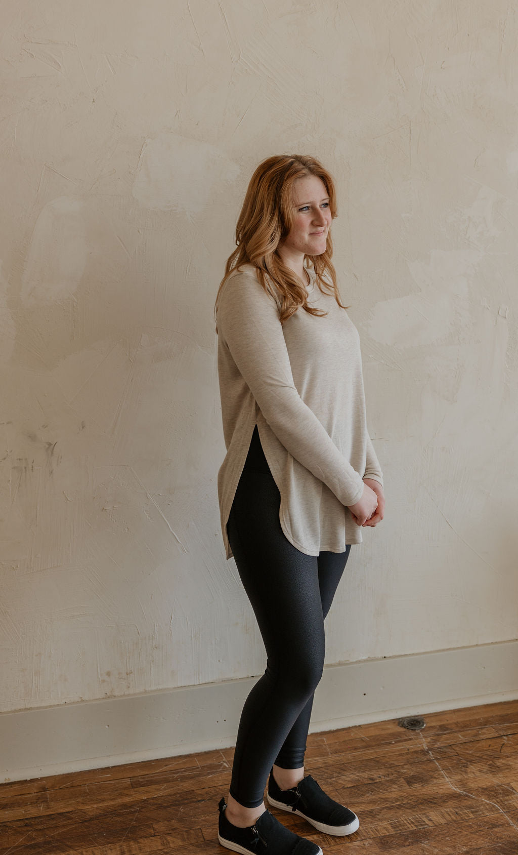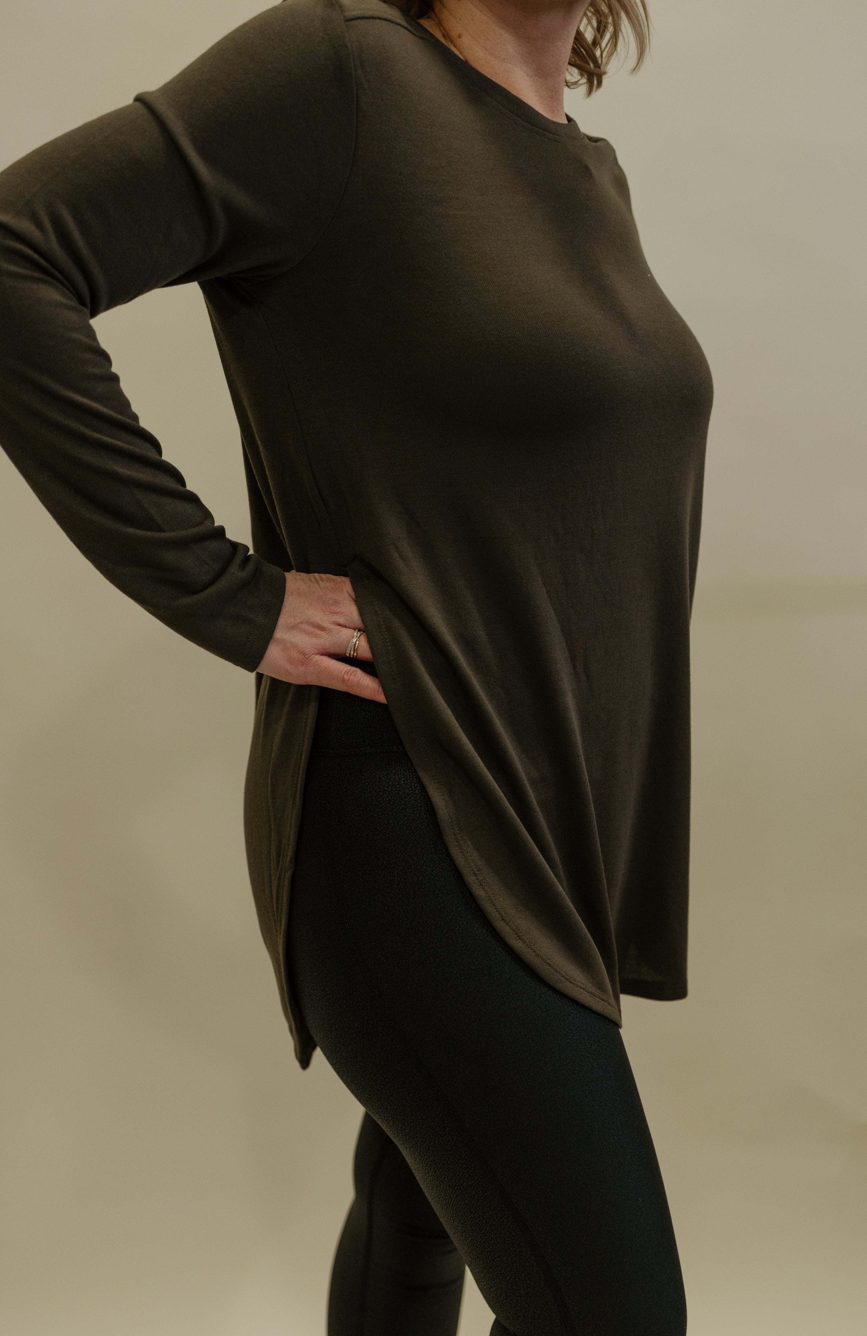 LYDIA LONG SLEEVE FLOW TOP WITH SIDE SLITS
