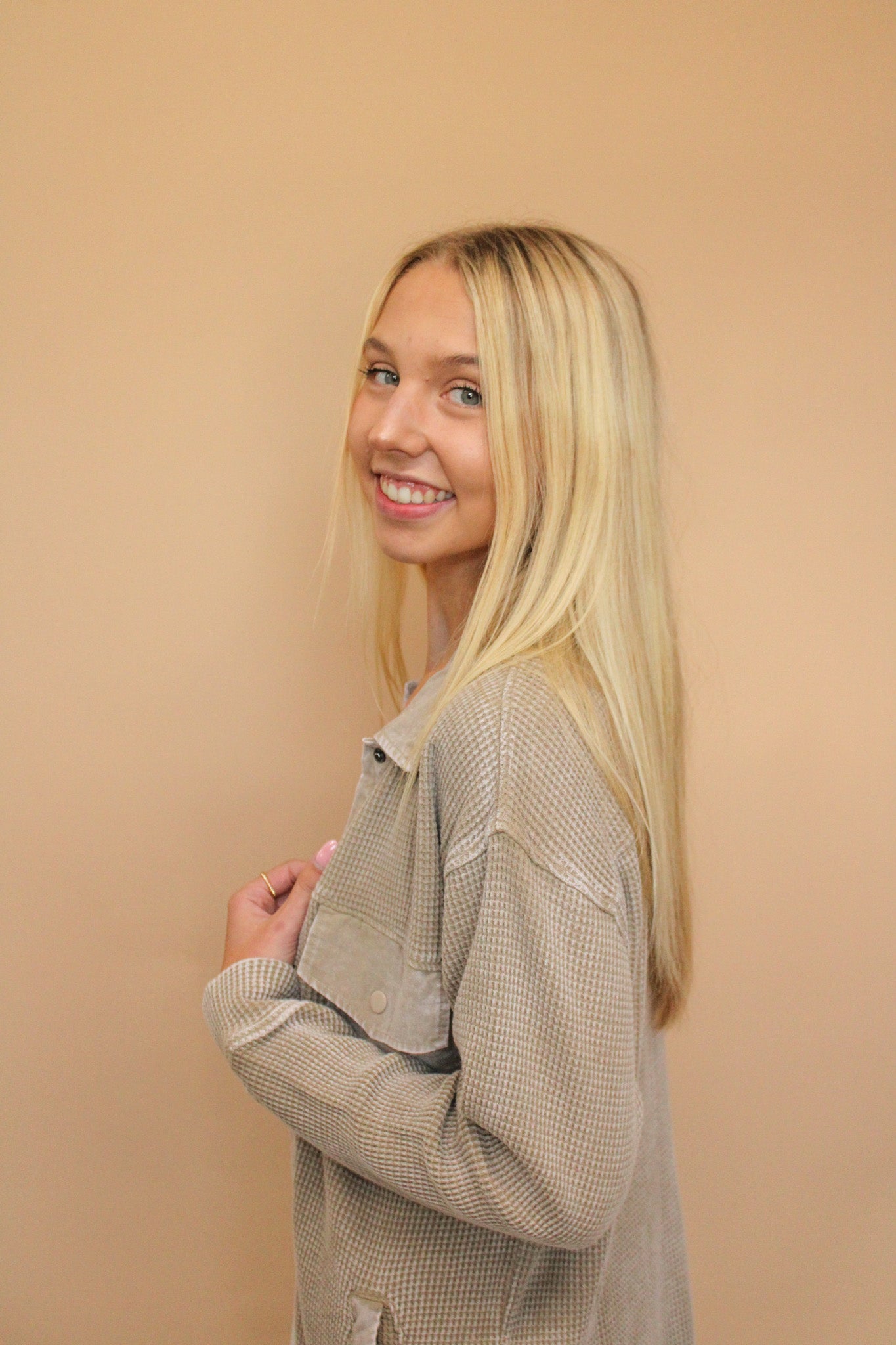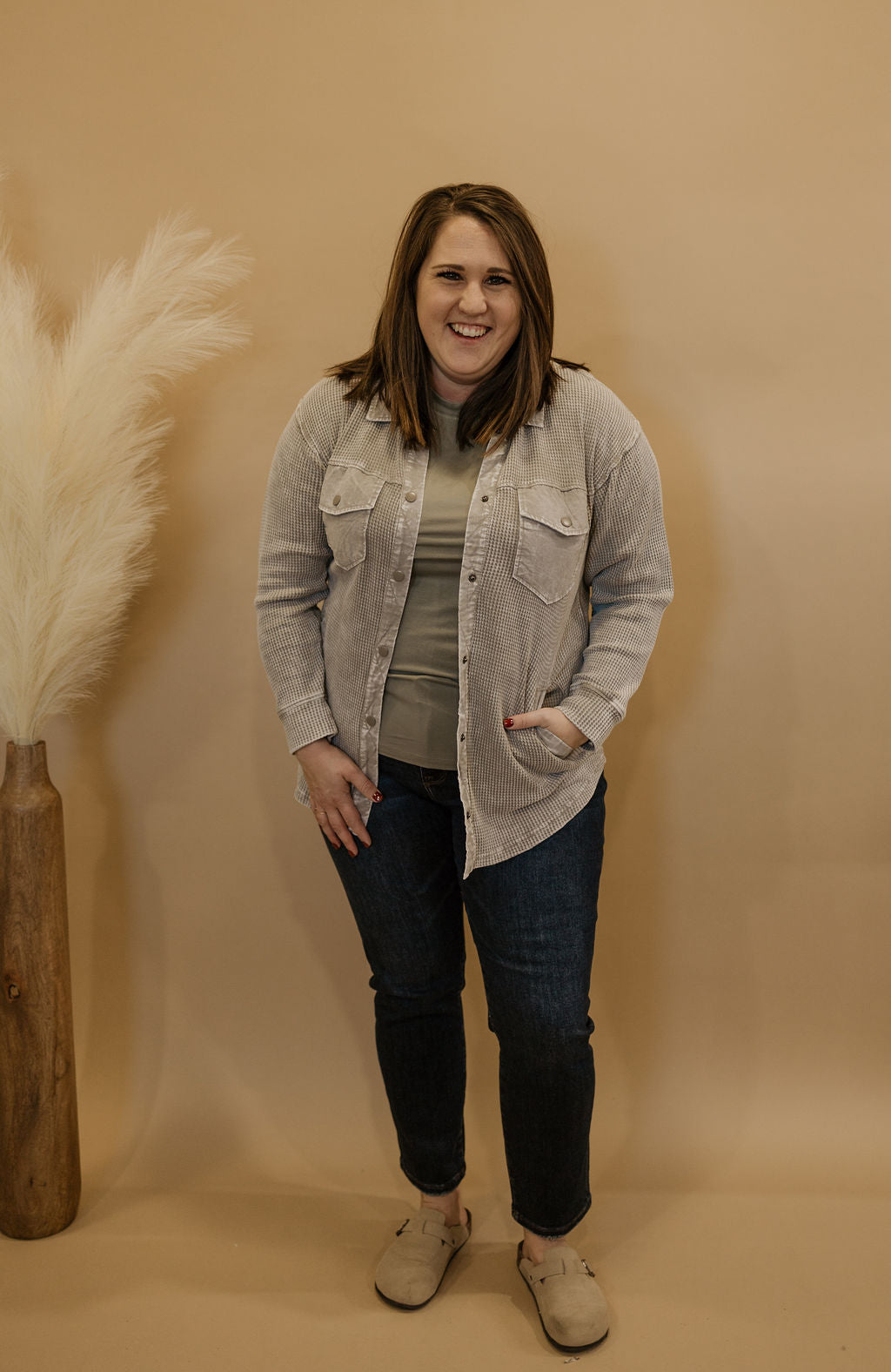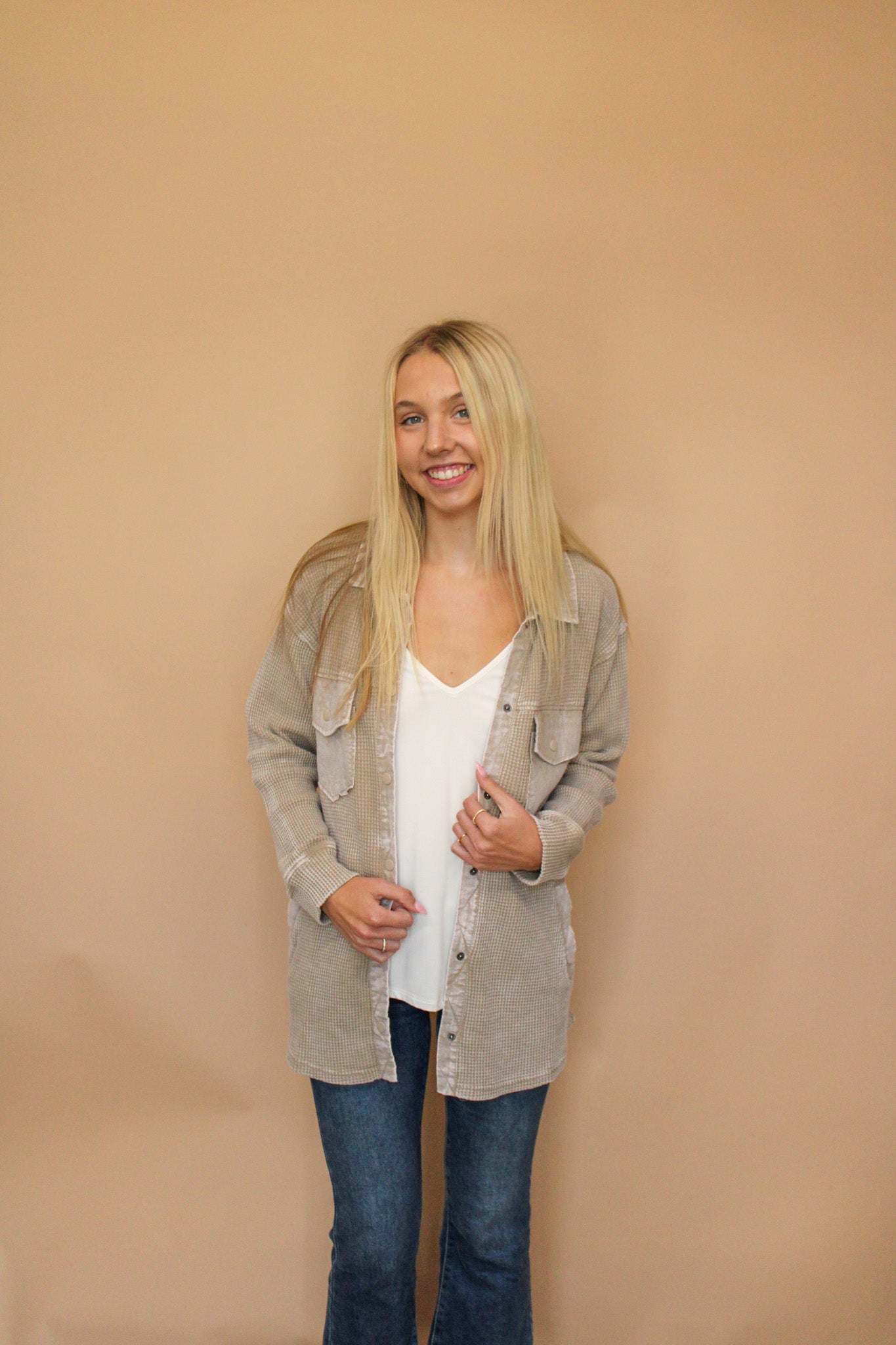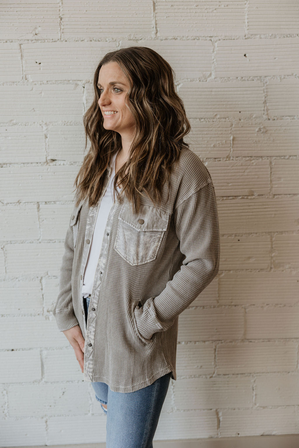KAYCIE WAFFLE KNIT MINERAL WASHED BUTTON DOWN