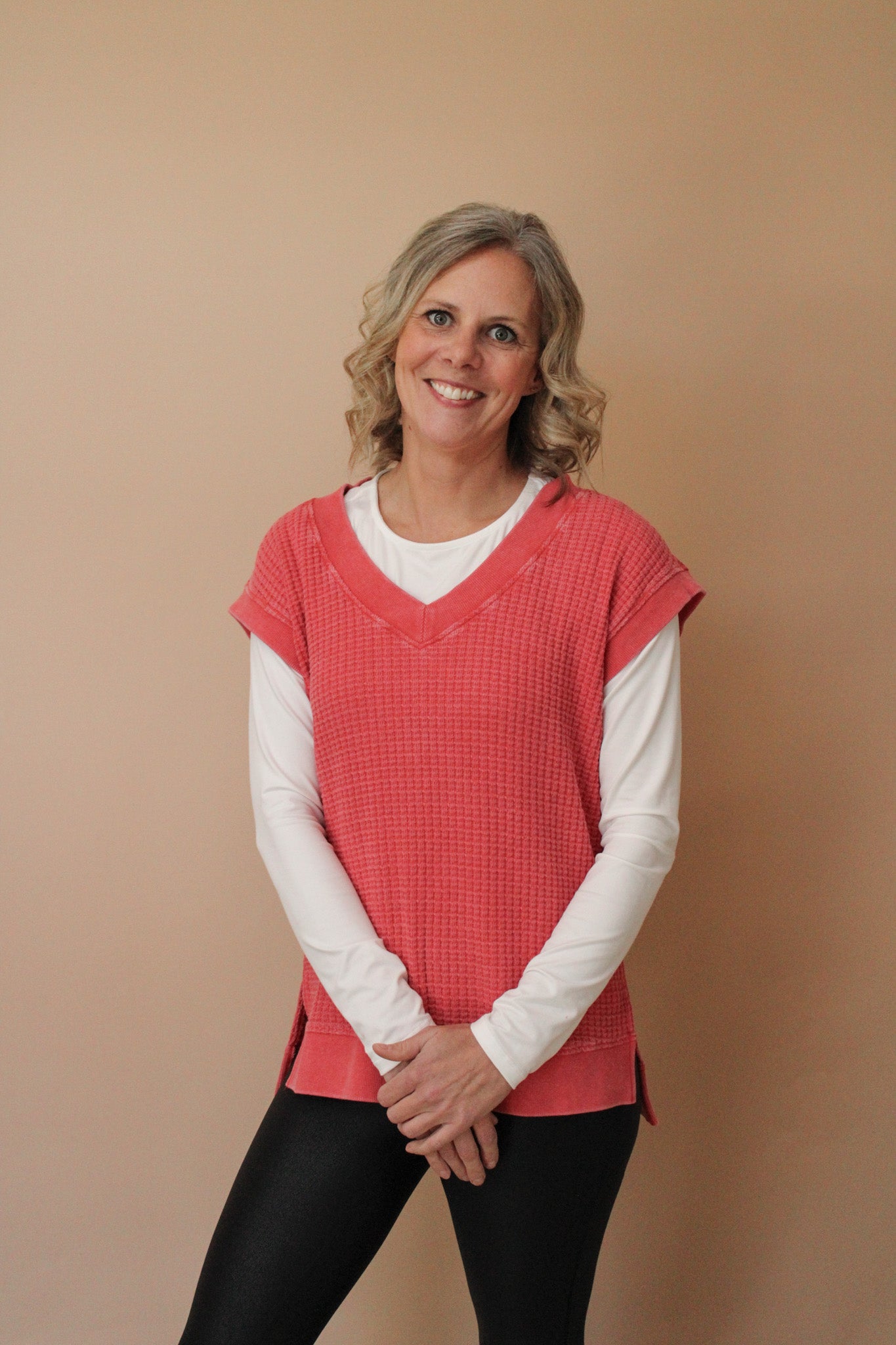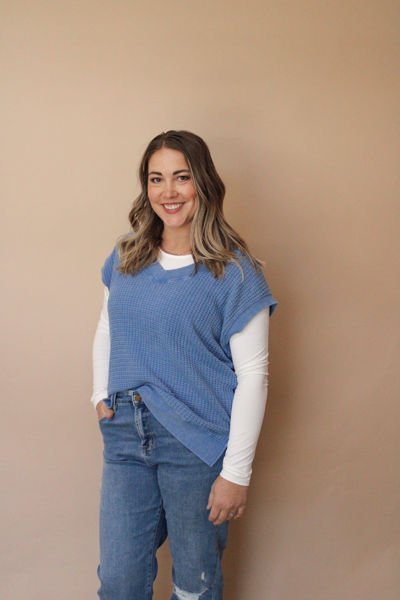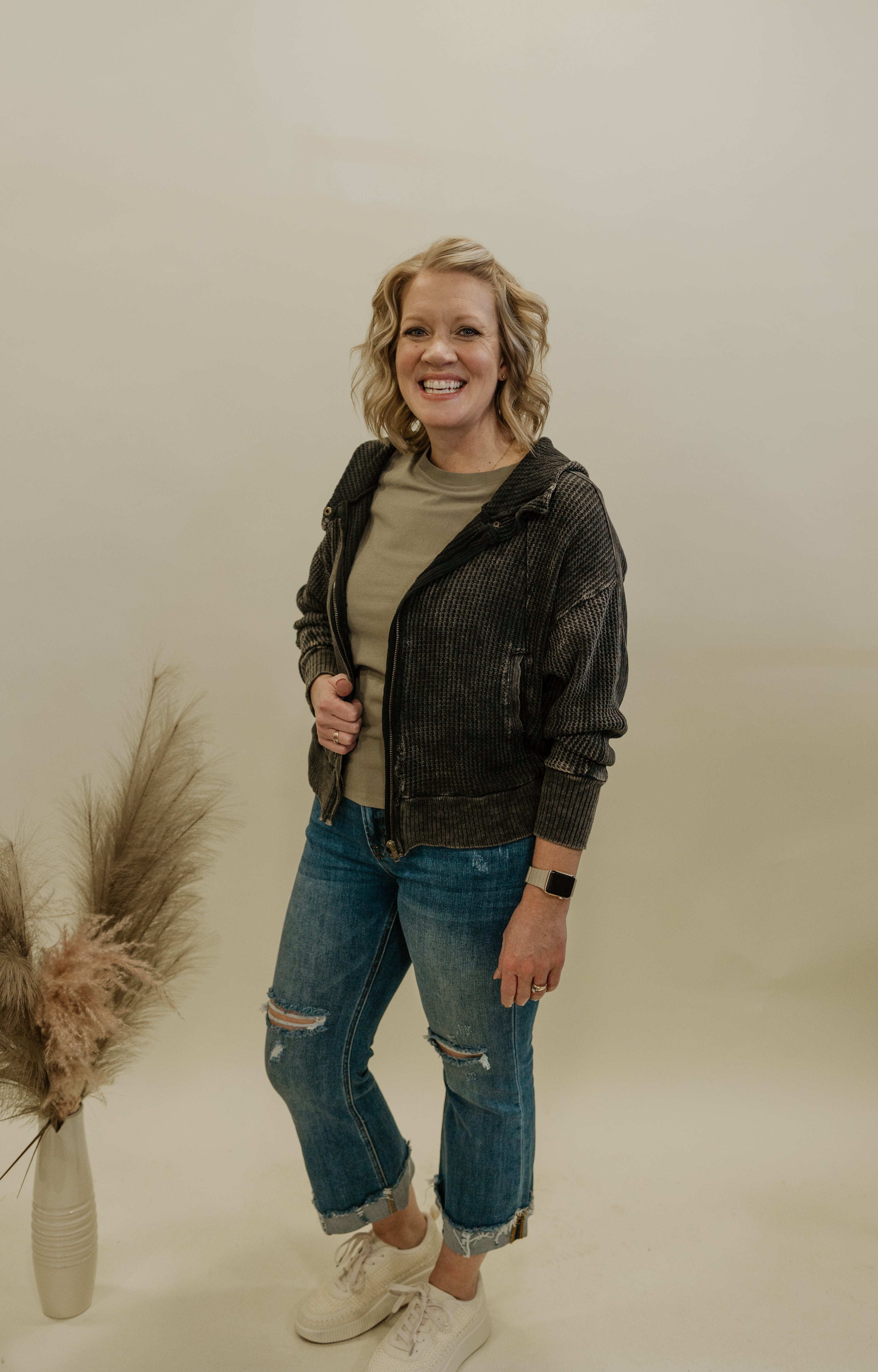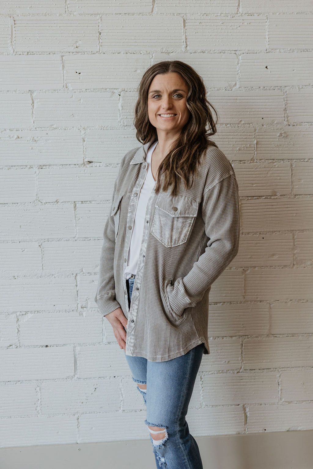 KAYCIE WAFFLE KNIT MINERAL WASHED BUTTON DOWN