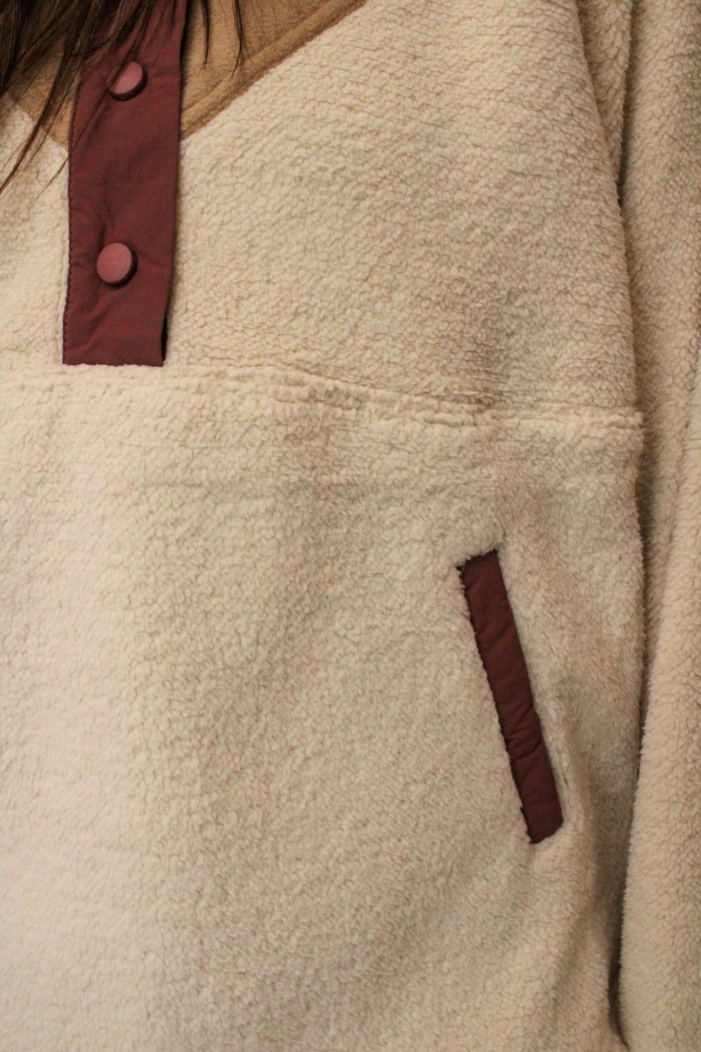GIA HALF BUTTON DOWN COLORBLOCK FLEECE TOP