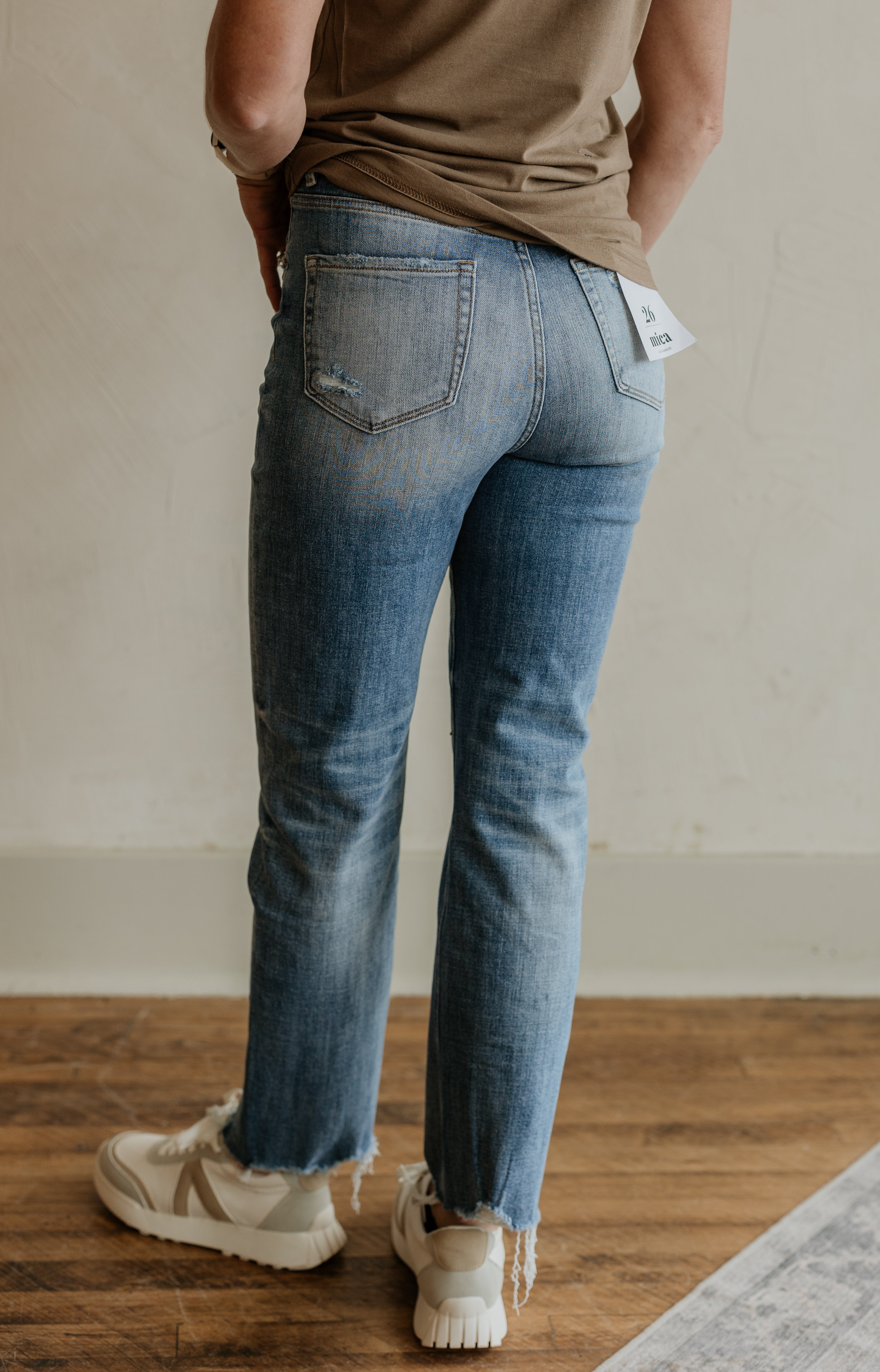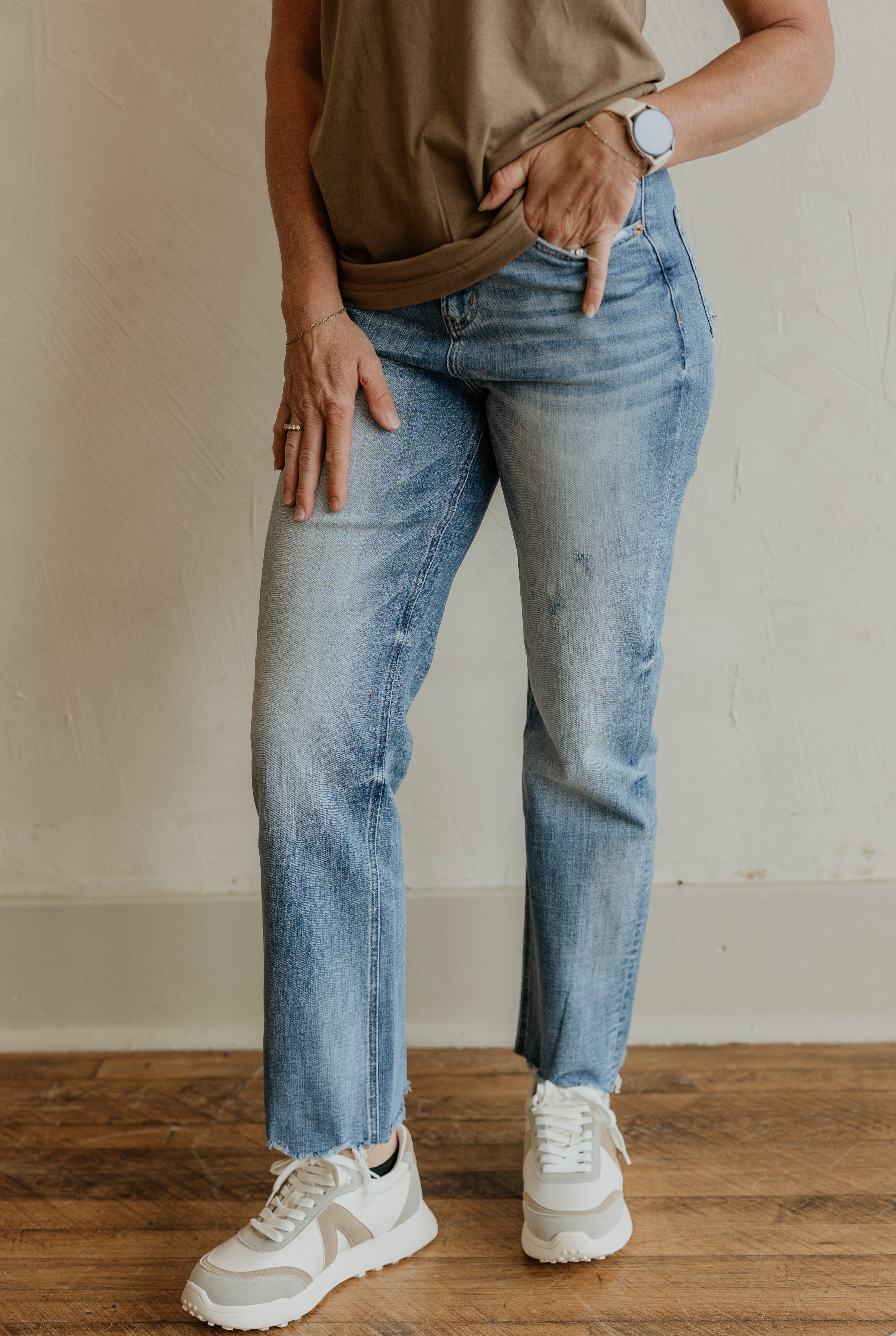 ADLEY HIGH RISE RAW HEM STRAIGHT JEAN