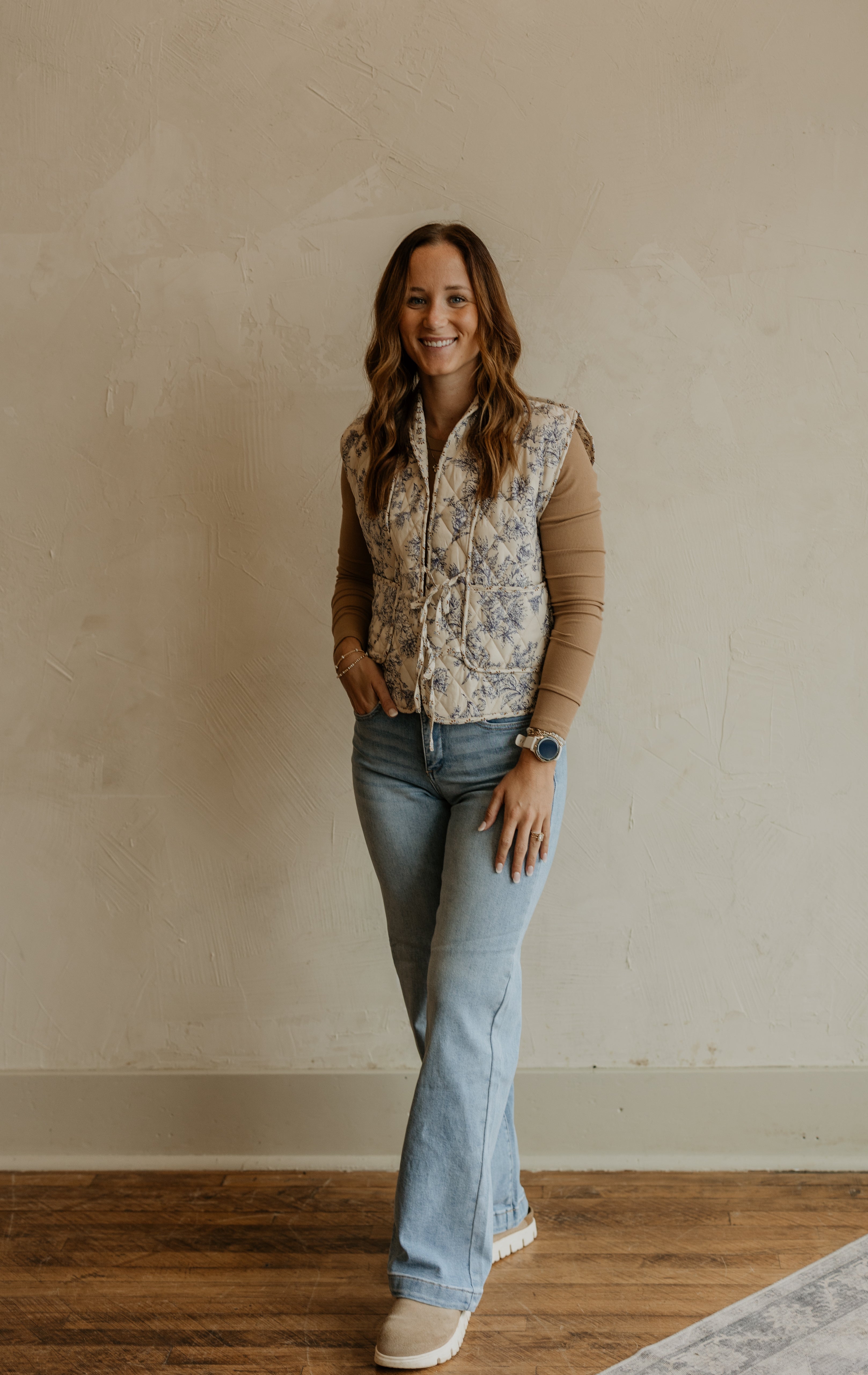 JEAN CHUNKY CABLE KNIT V-NECK VEST