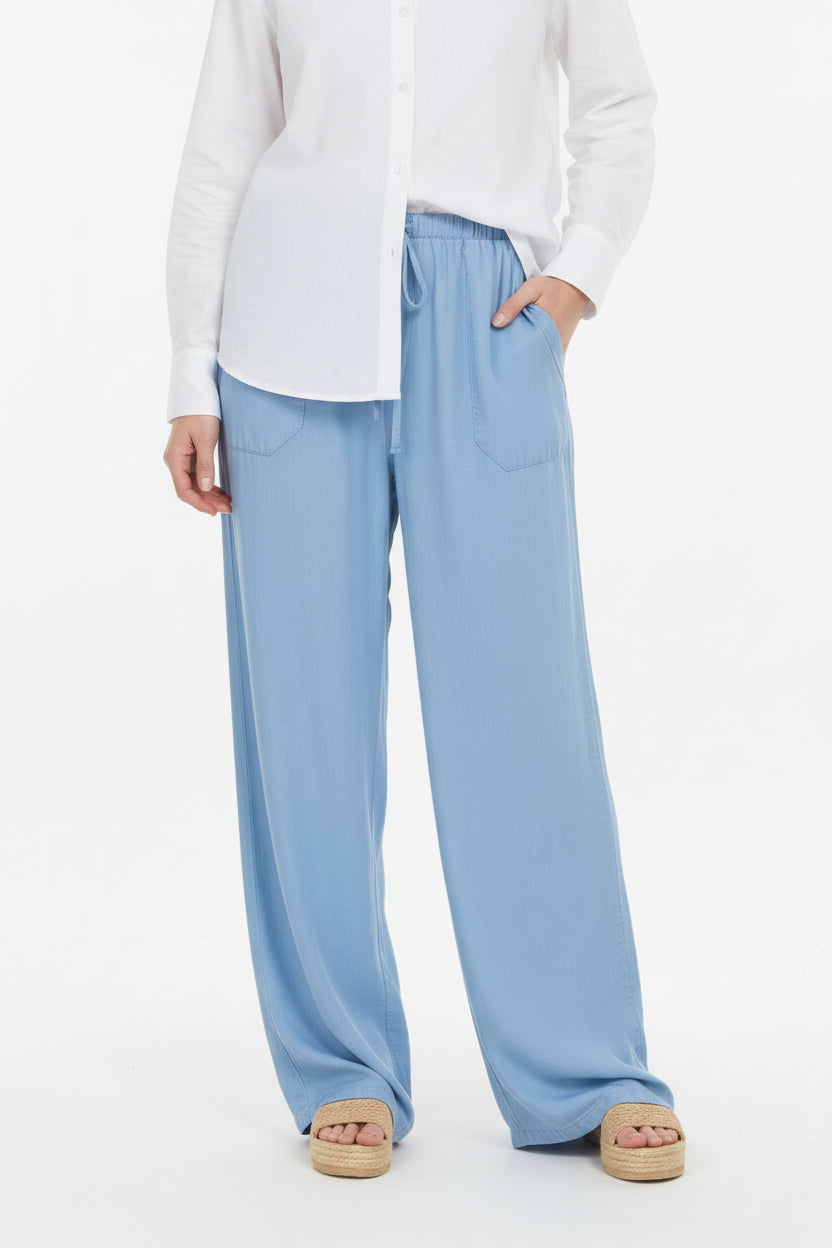 IRELAND CURVY CHAMBRAY WIDE LEG PANTS