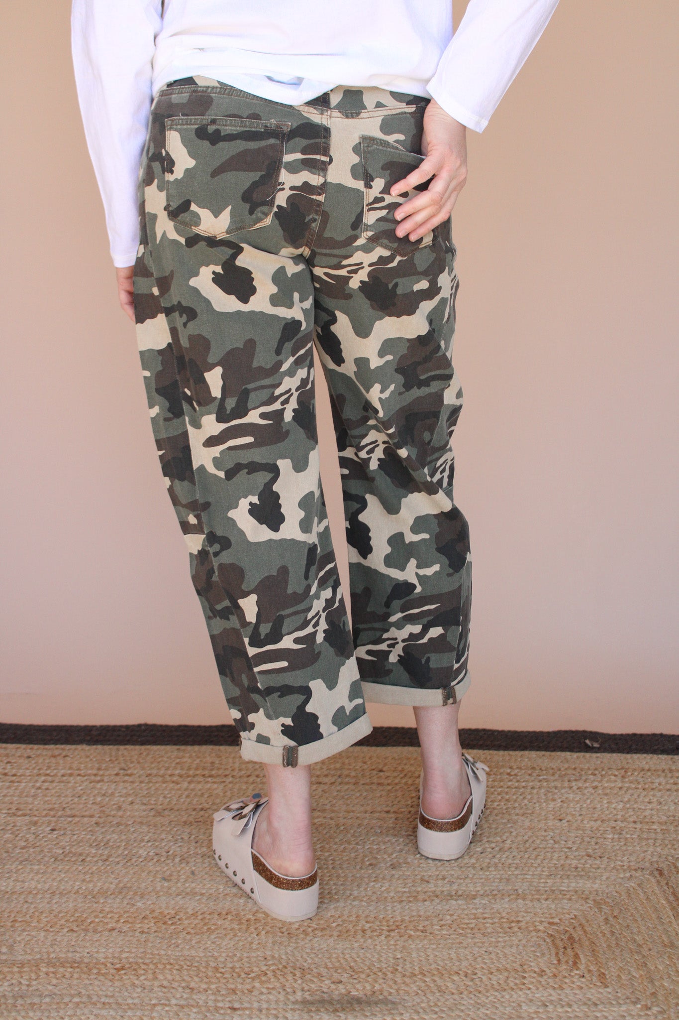 HUNTLEY HIGH RISE ANKLE BARREL CAMO PANTS