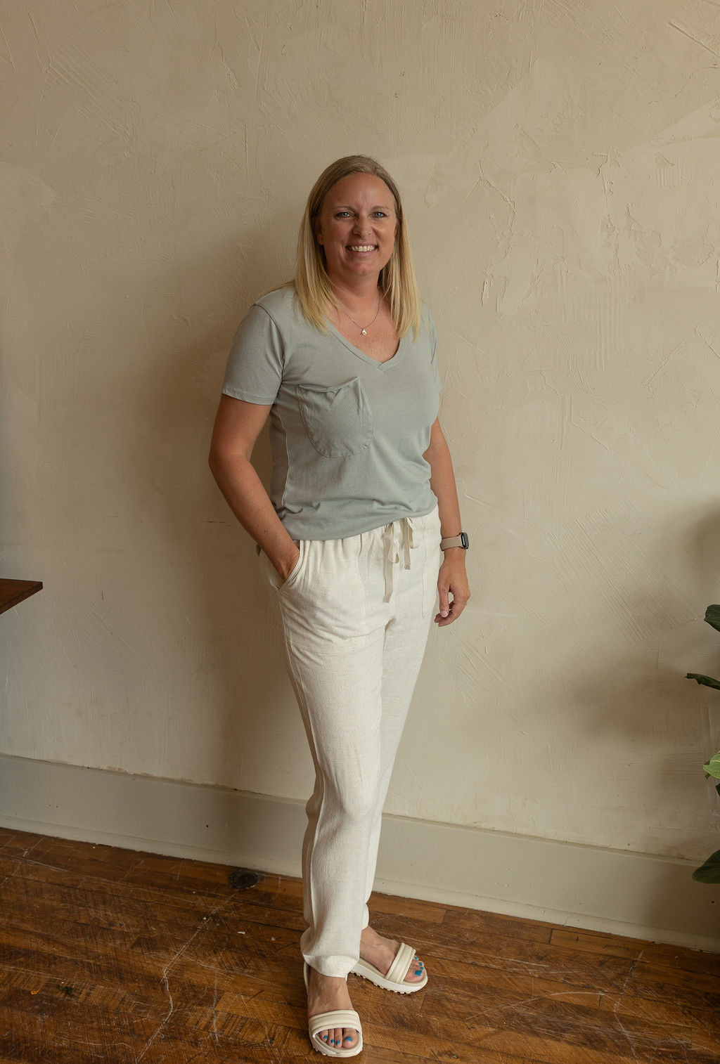JOSIE LINEN ELASTIC WAISTBAND PANTS