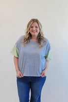 Embrace your curves with the ROSARIO CURVY Plus Contrast Sleeve Tee. Made with a soft stripe knit fabric, this top features a round cut neckline and short sleeves for a comfortable fit. Perfect for adding a pop of style to your wardrobe with its unique drop shoulder design.
