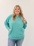 Get cozy and stylish with the SHANDA CURVY TERRY PULLOVER! Made with 100% cotton French terry, this plus-size pullover features ribbed detailing and convenient pockets. Perfect for any occasion, this pigment-dyed pullover will keep you comfortable and fashionable.