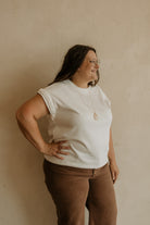Stay cool and stylish in the Tessa Curvy Braided Short Sleeve Top. This off-white crew neck features a charming braided sleeve detail that adds a fun twist to your everyday look. Made from a comfy blend of 84% cotton and 16% polyester, it’s soft, breathable, and perfect for all-day wear. Embrace your curves with a playful touch!