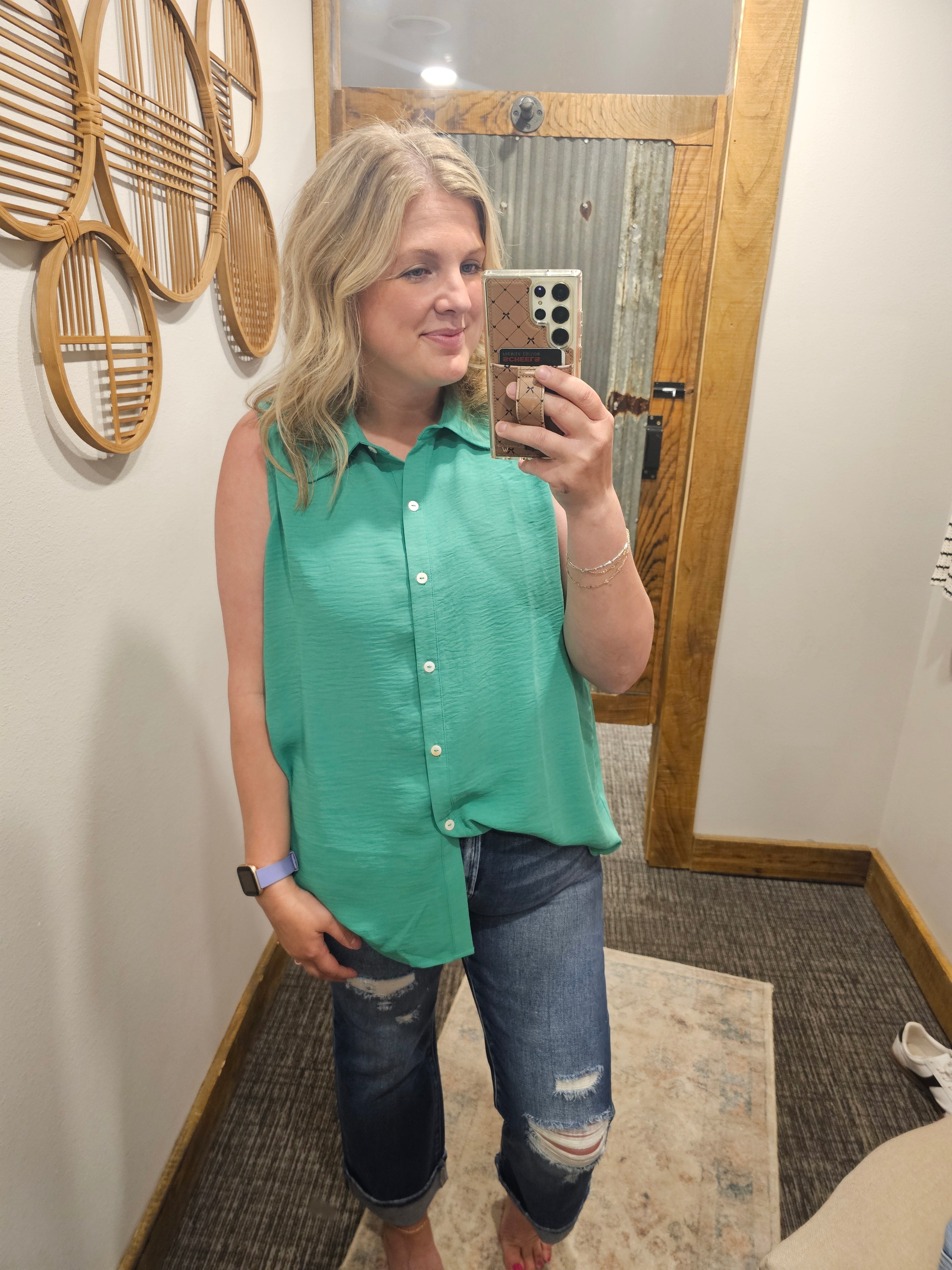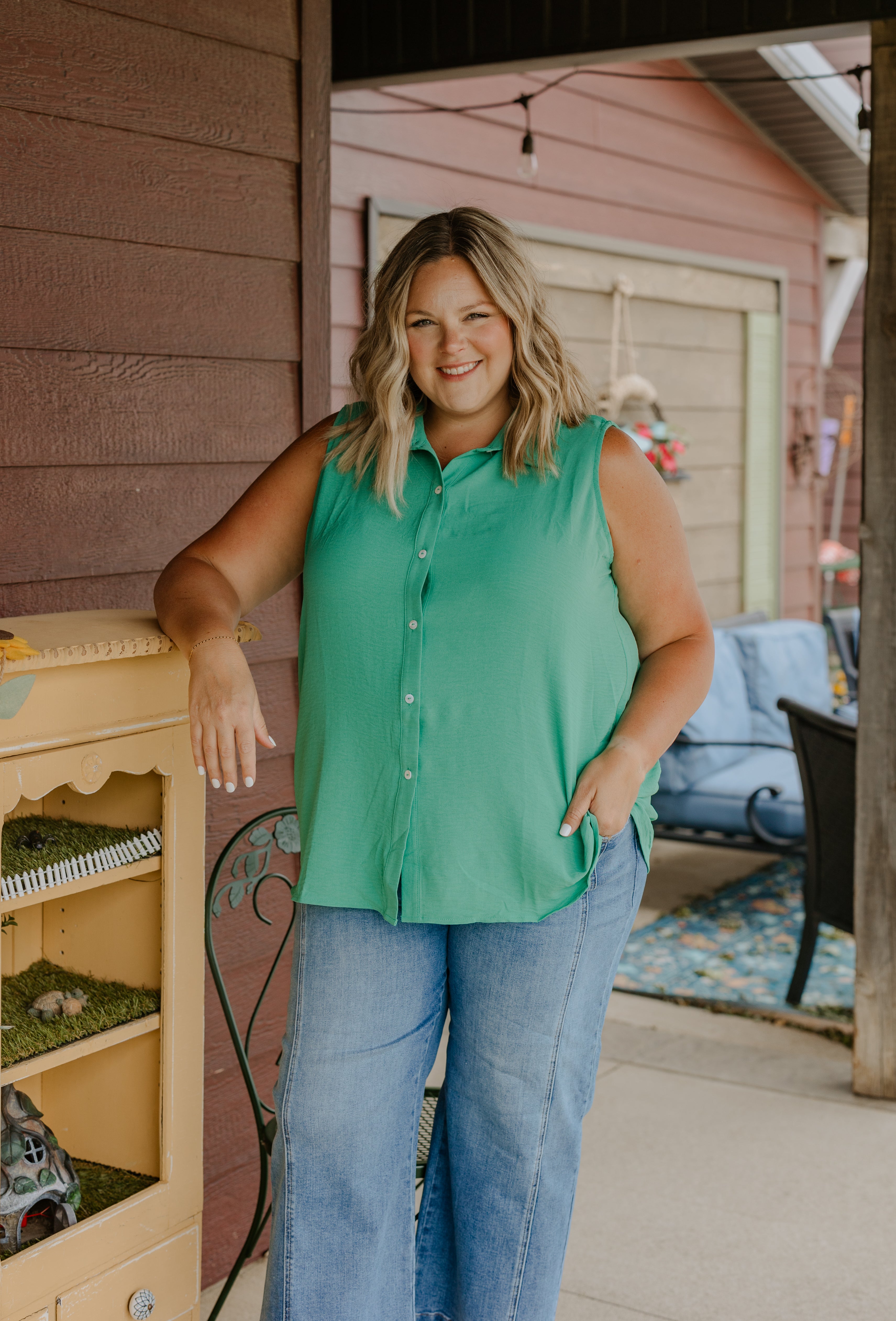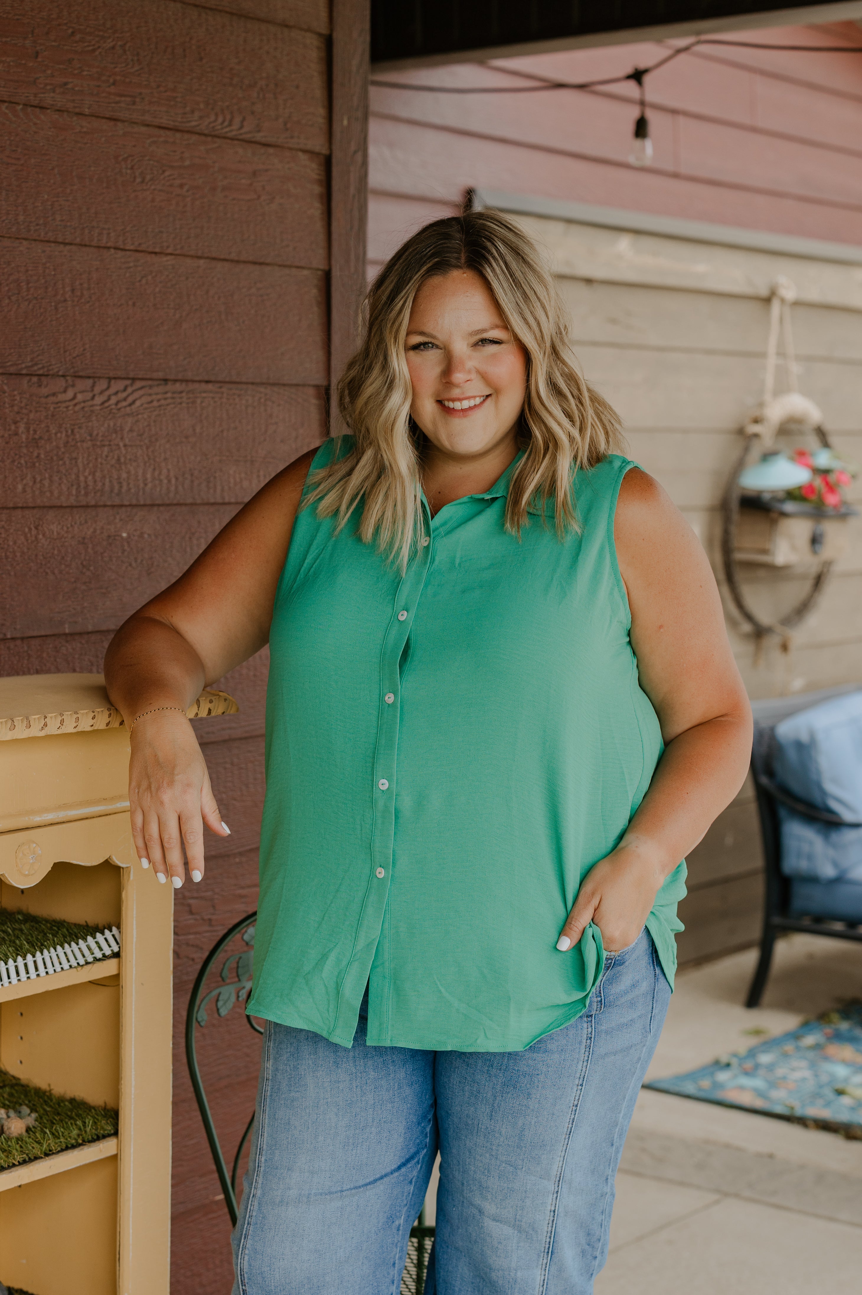 RAMONA CURVY WOVEN SLEEVELESS BLOUSE