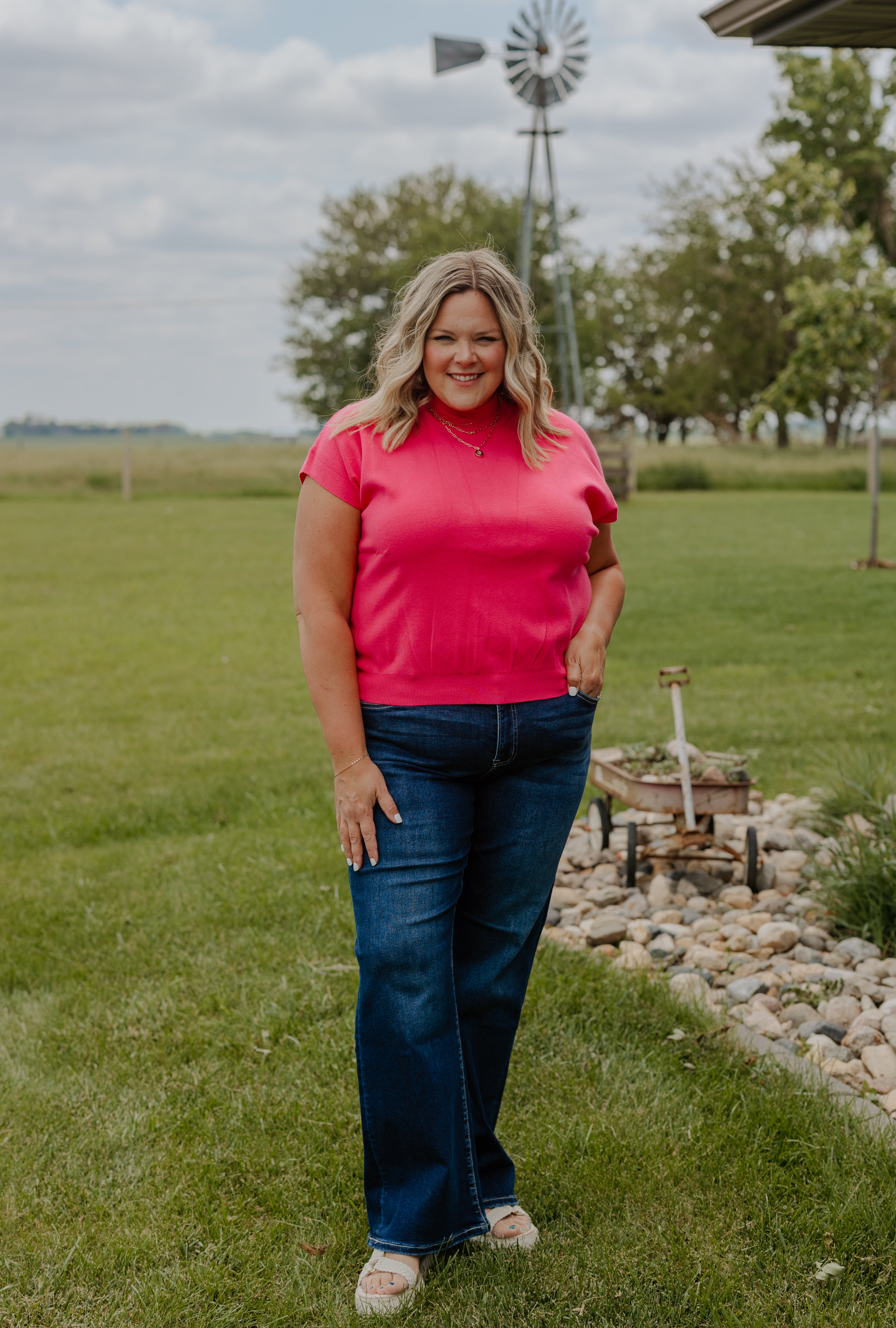 JANESSA CURVY SWEATER SHORT SLEEVE TOP