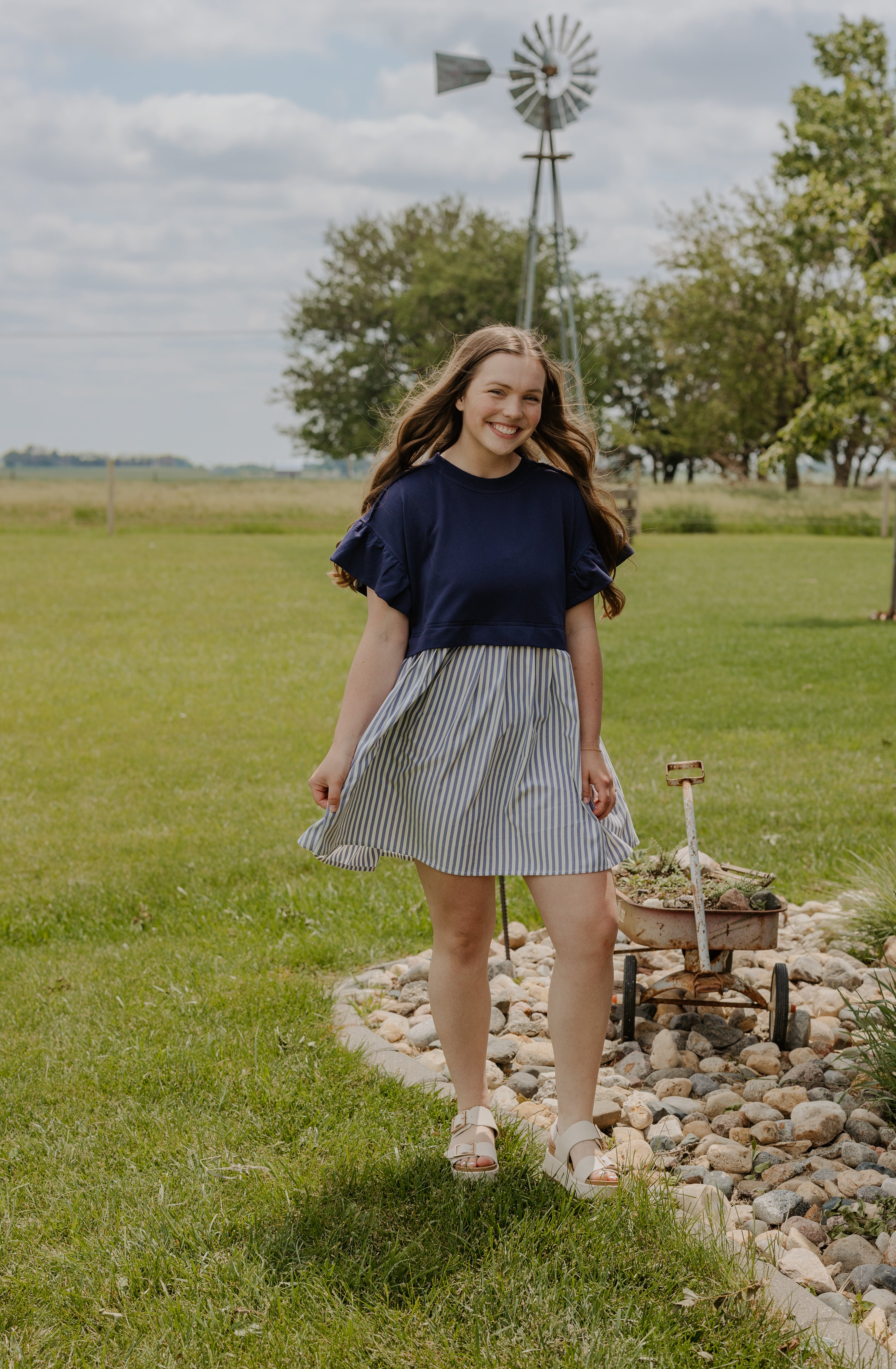 This playful mini dress features bold colorblock stripes and charming ruffle details that add a flirty touch to your look. Perfect for sunny days or fun nights out, its lightweight fabric and lively design keep you comfortable and stylish wherever you go. Embrace vibrant vibes with this eye-catching piece!