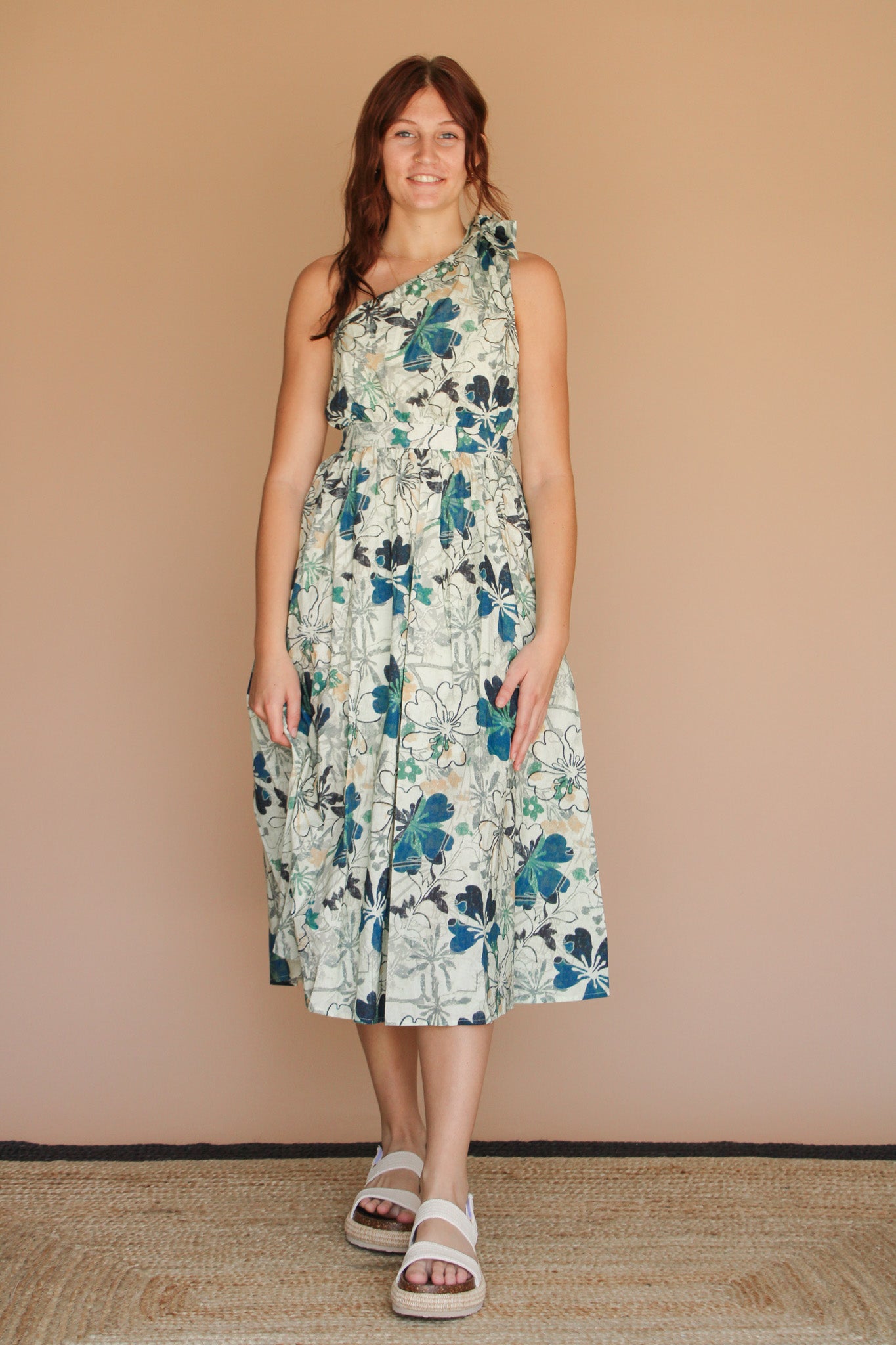 Turn heads in the Aubri One Shoulder Floral Dress, featuring a charming mix of vibrant blooms and a flirty midi length. The stylish one-shoulder design adds a playful twist, perfect for sunny days and special occasions alike. Embrace effortless elegance with this fun and feminine dress that moves with you.