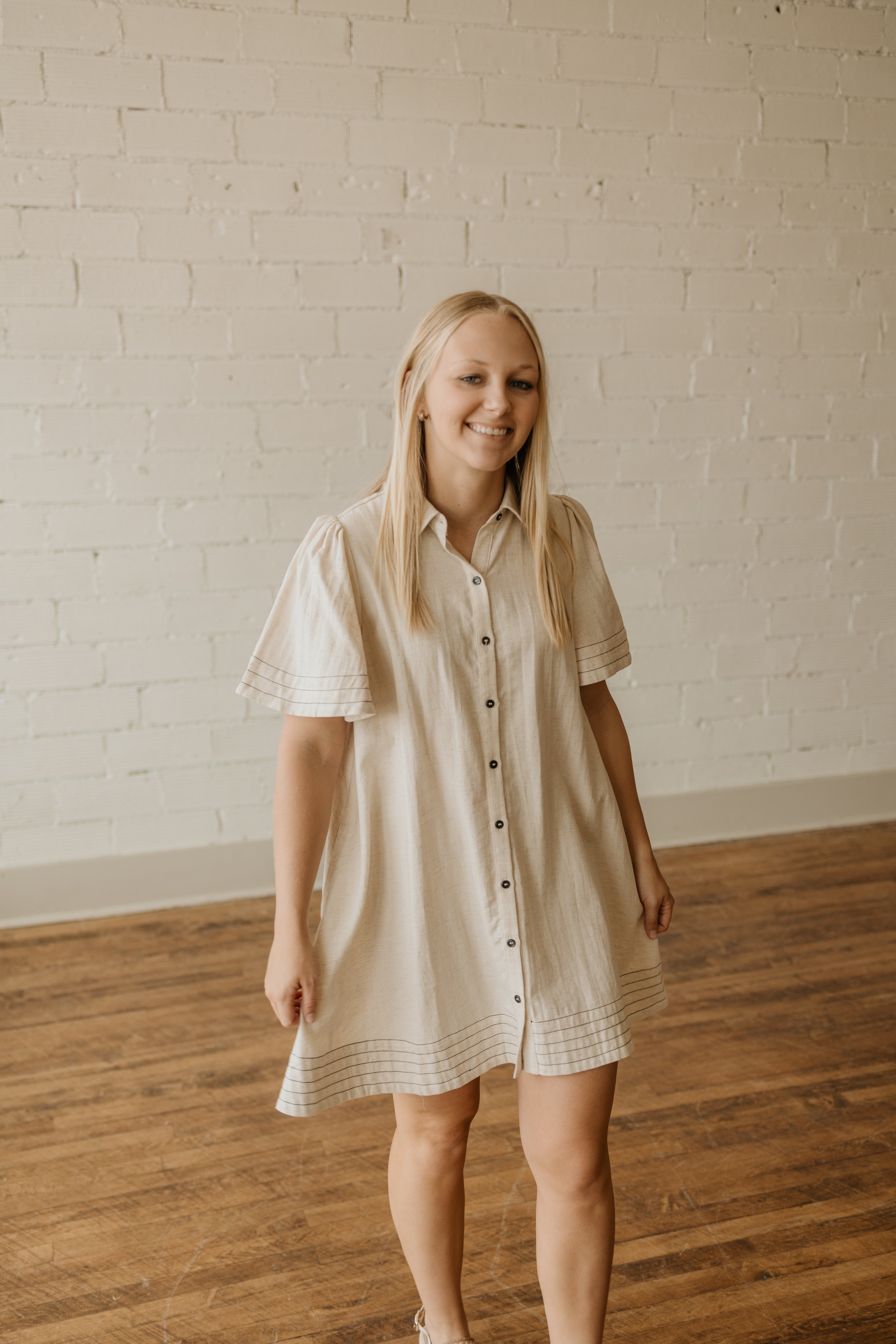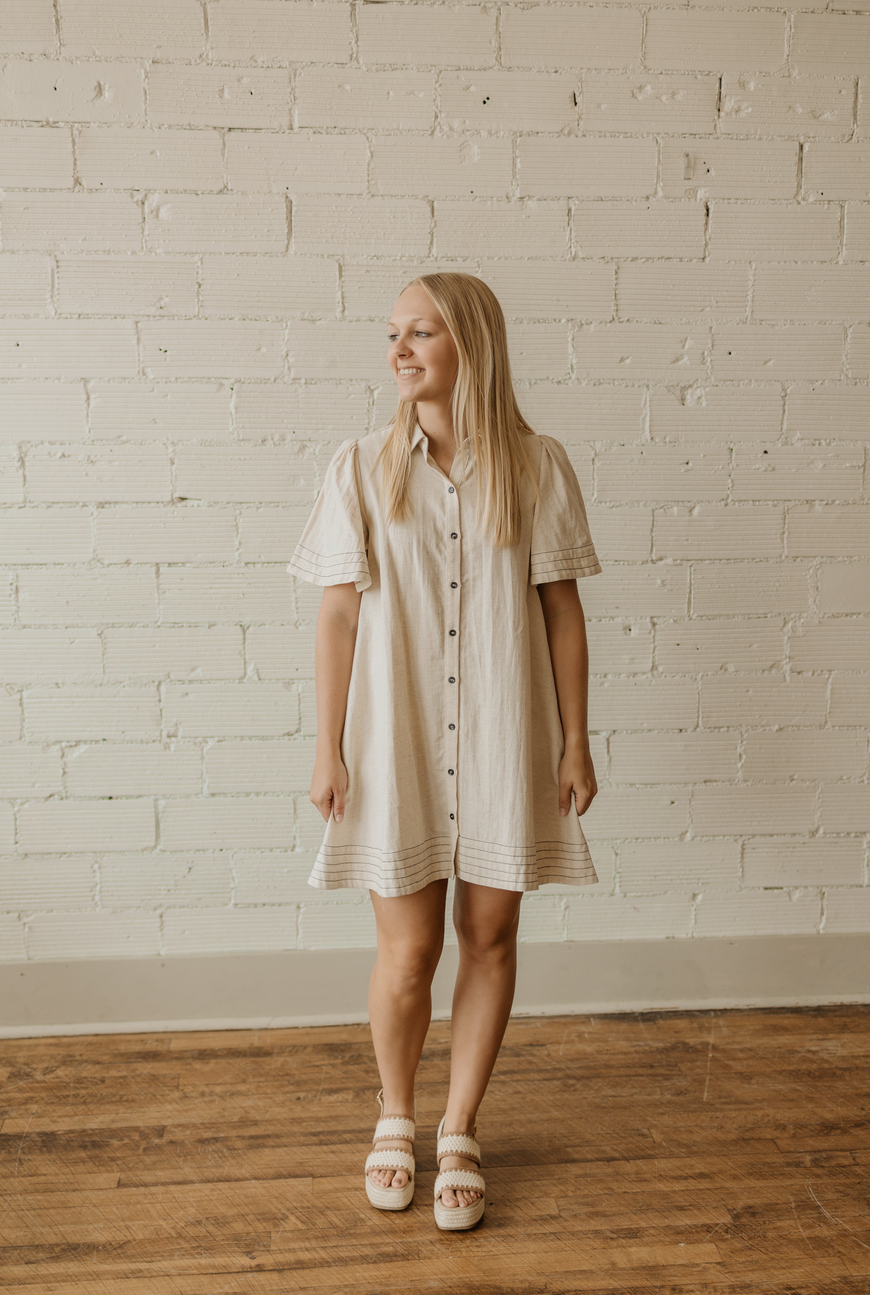 Step into effortless charm with the Claudia Button Down Mini Dress. Crafted from 100% breathable cotton, this short-sleeve dress keeps you cool while turning heads. Its playful button-down front adds a flirty touch, perfect for sunny days and spontaneous adventures. Easy to wear and impossible to ignore!