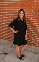 Featuring short sleeves and a collared neckline, this dress is perfect for any occasion. The unique textured fabric will make you stand out, and the convenient side pocket adds functionality without sacrificing style.