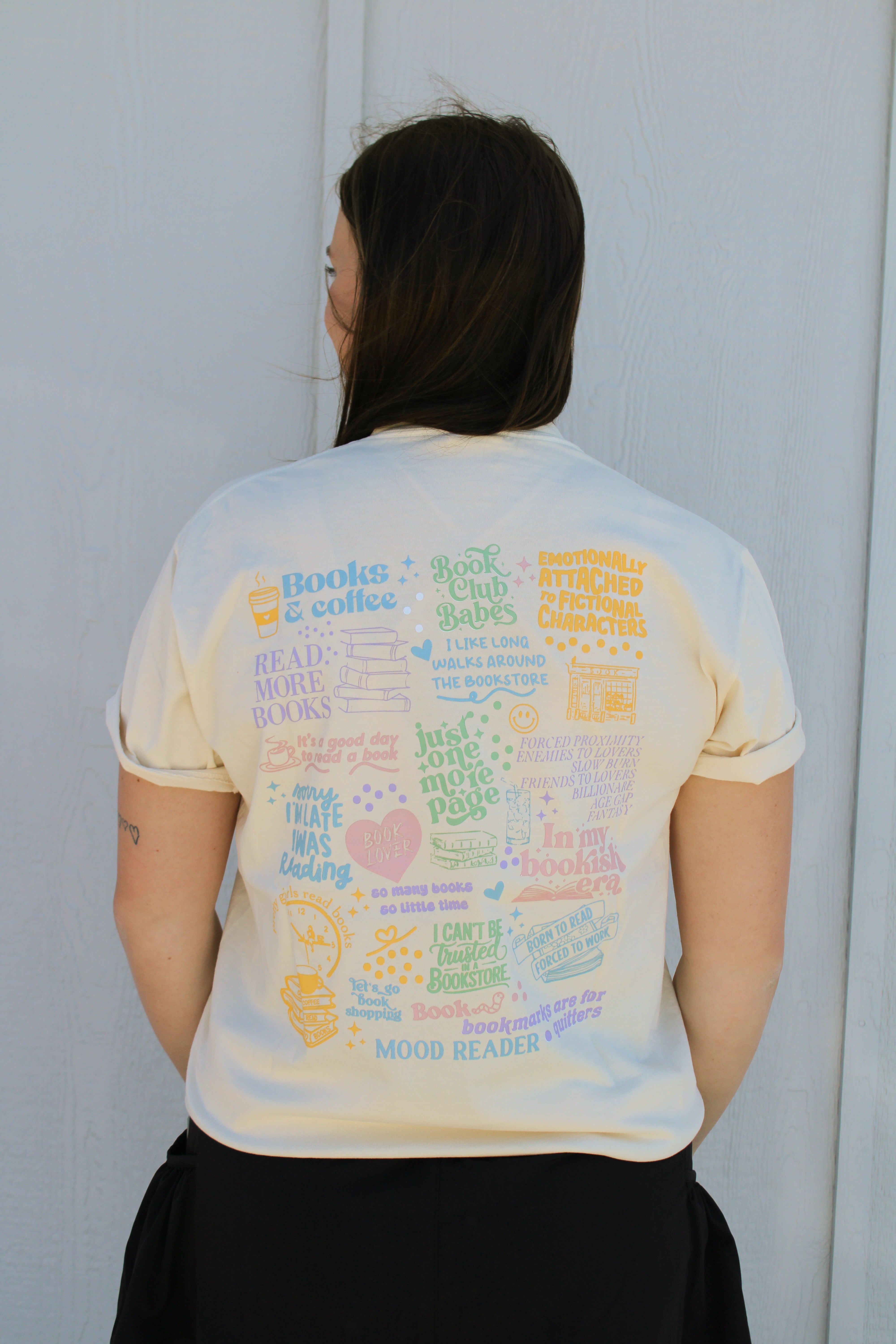 HOT GIRLS READ BOOKS printed on an ivory COMFORT COLORS crewneck t-shirt.