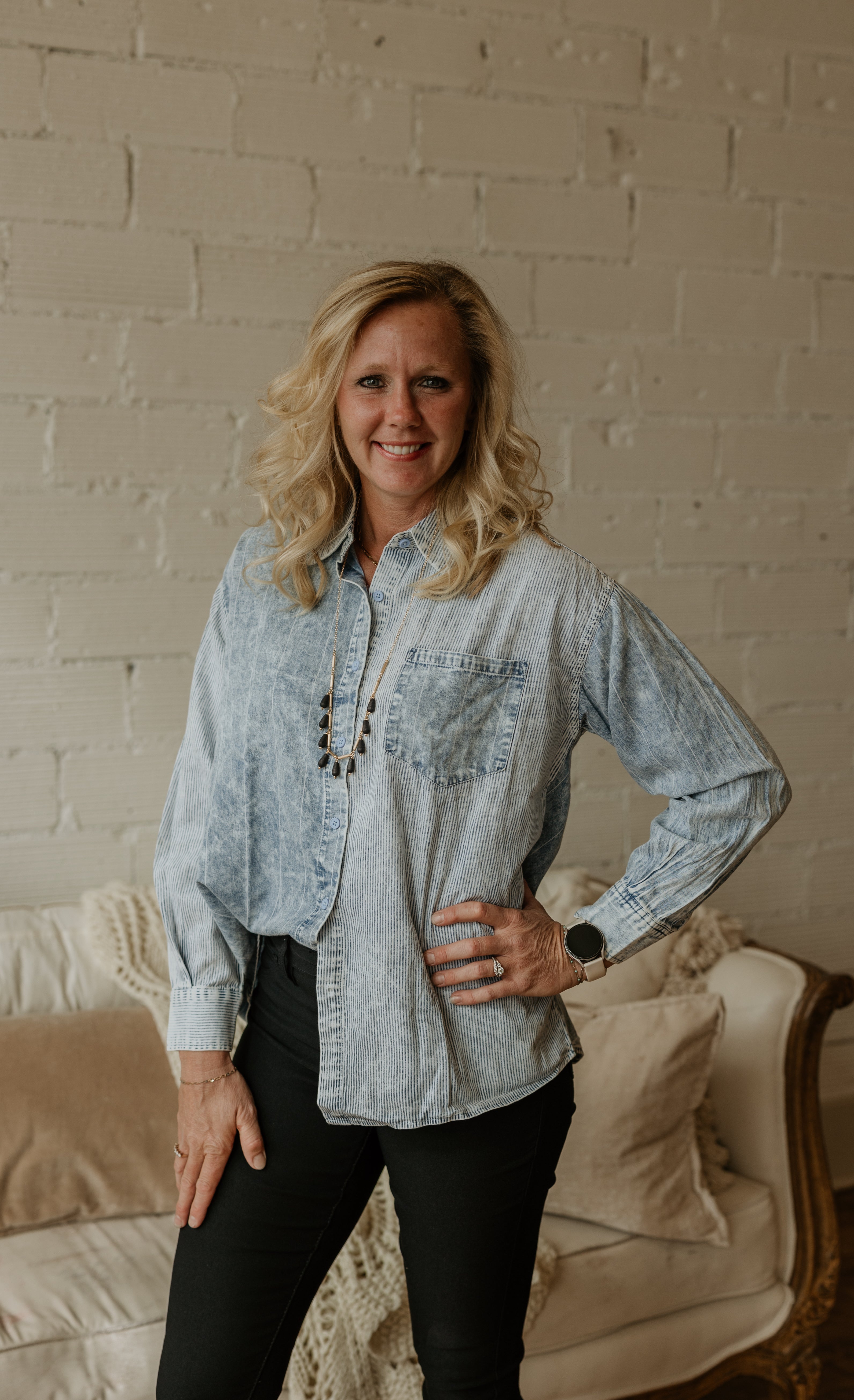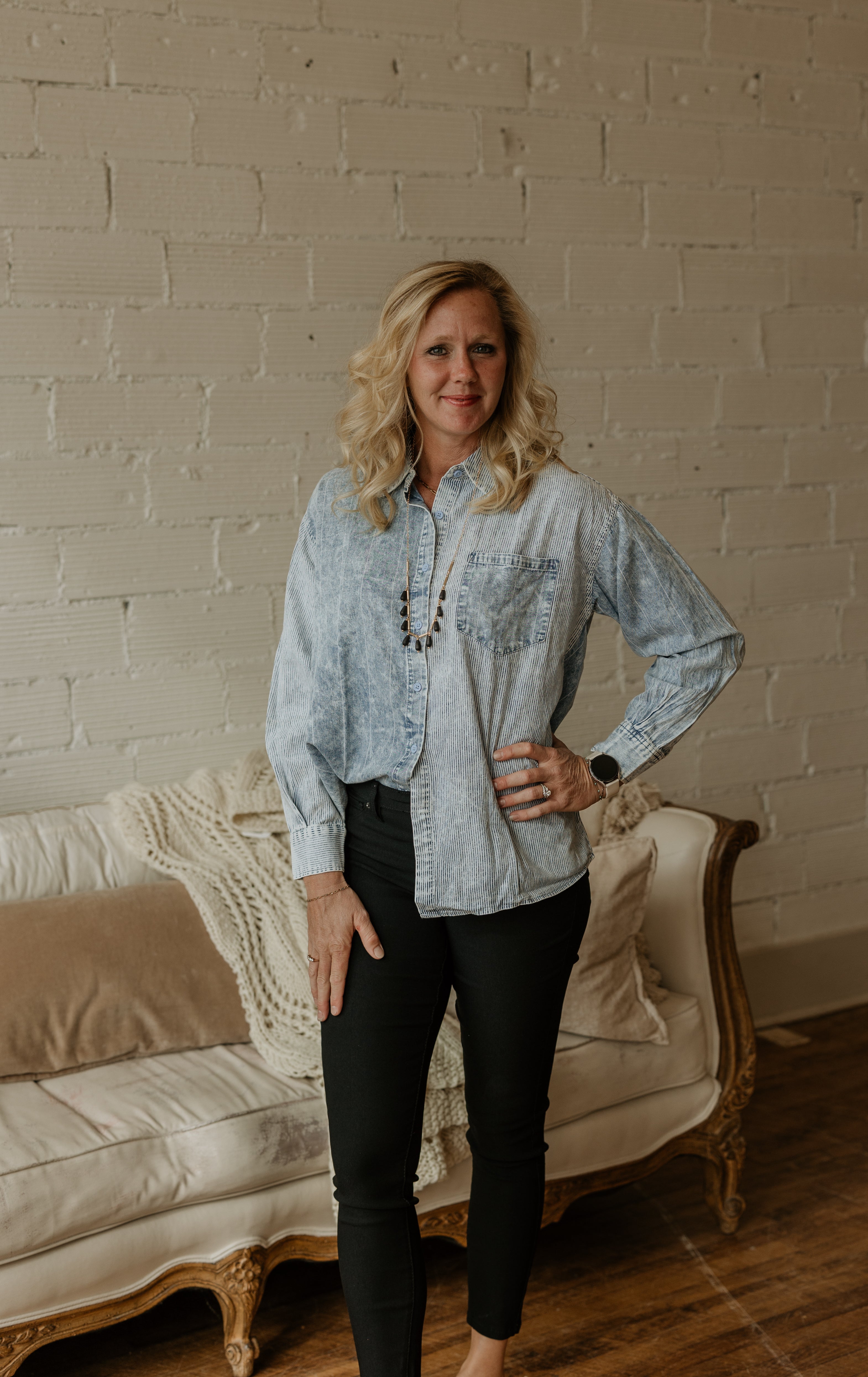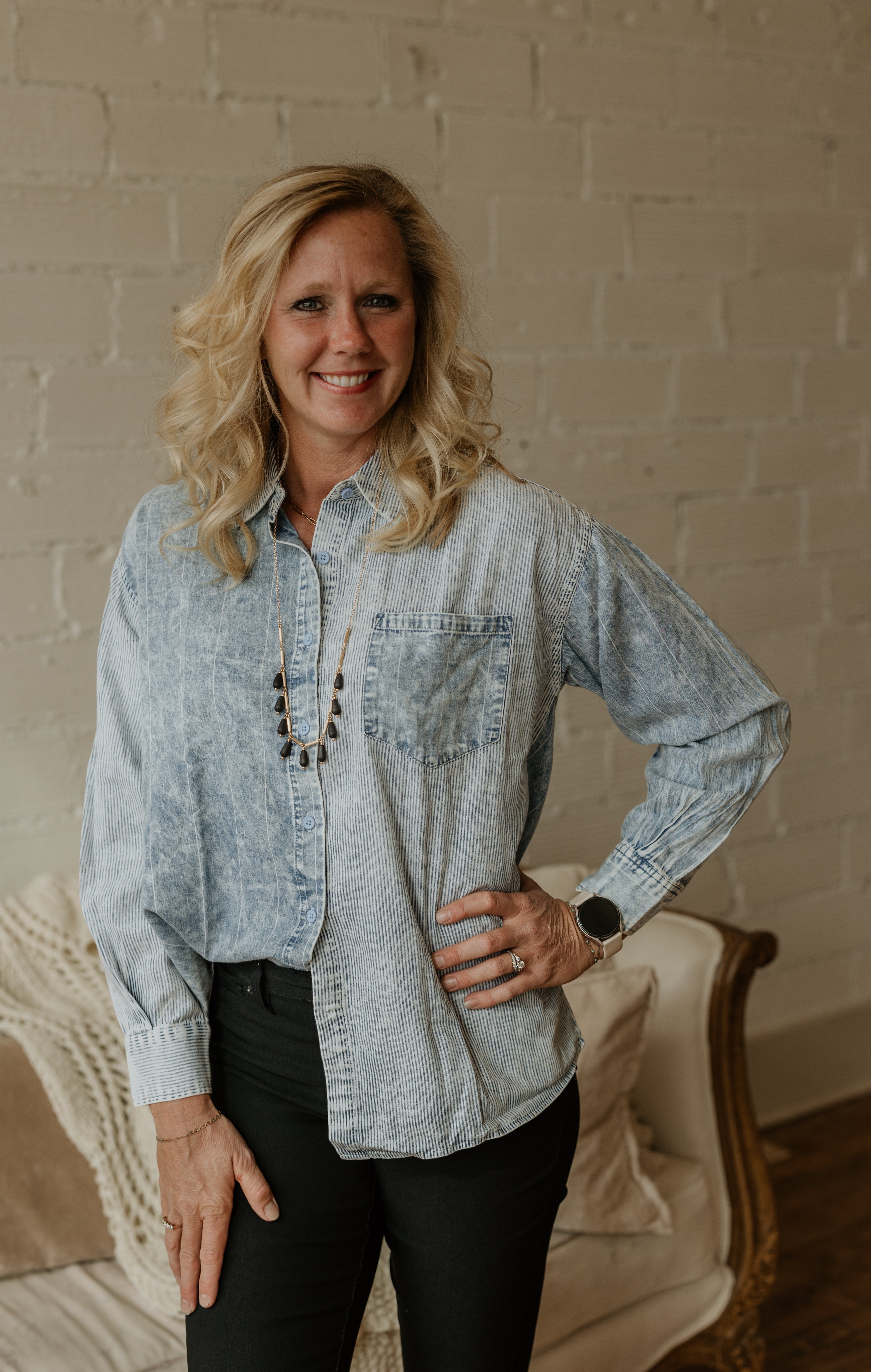 SHAYNA MINERAL WASHED COLORBLOCK BUTTON DOWN