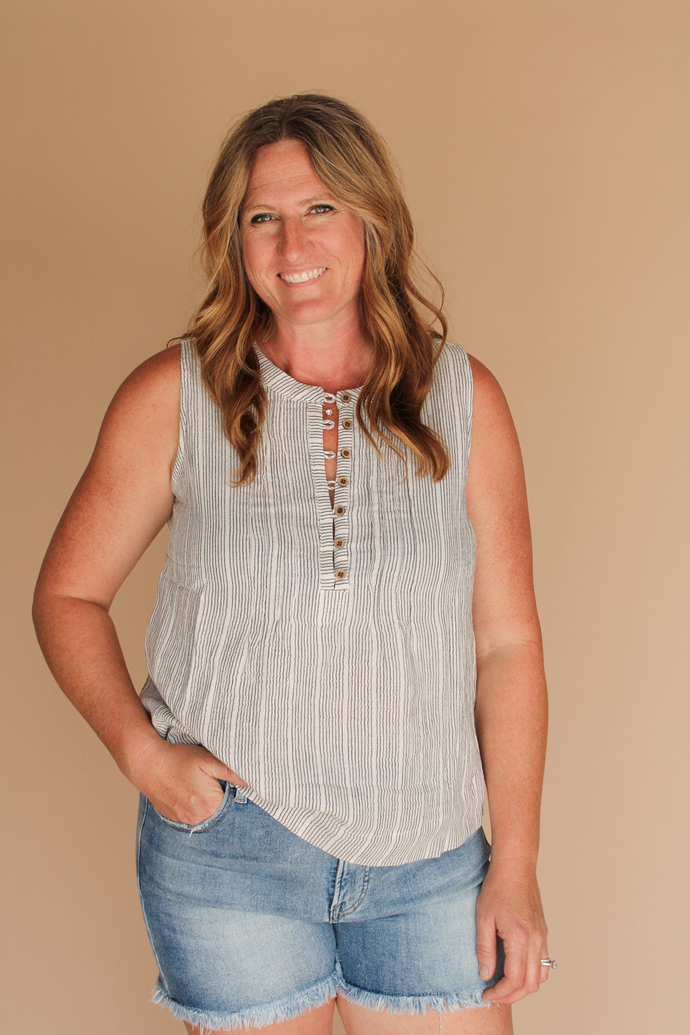 SUMMER BUTTON UP CAP SLEEVE TOP