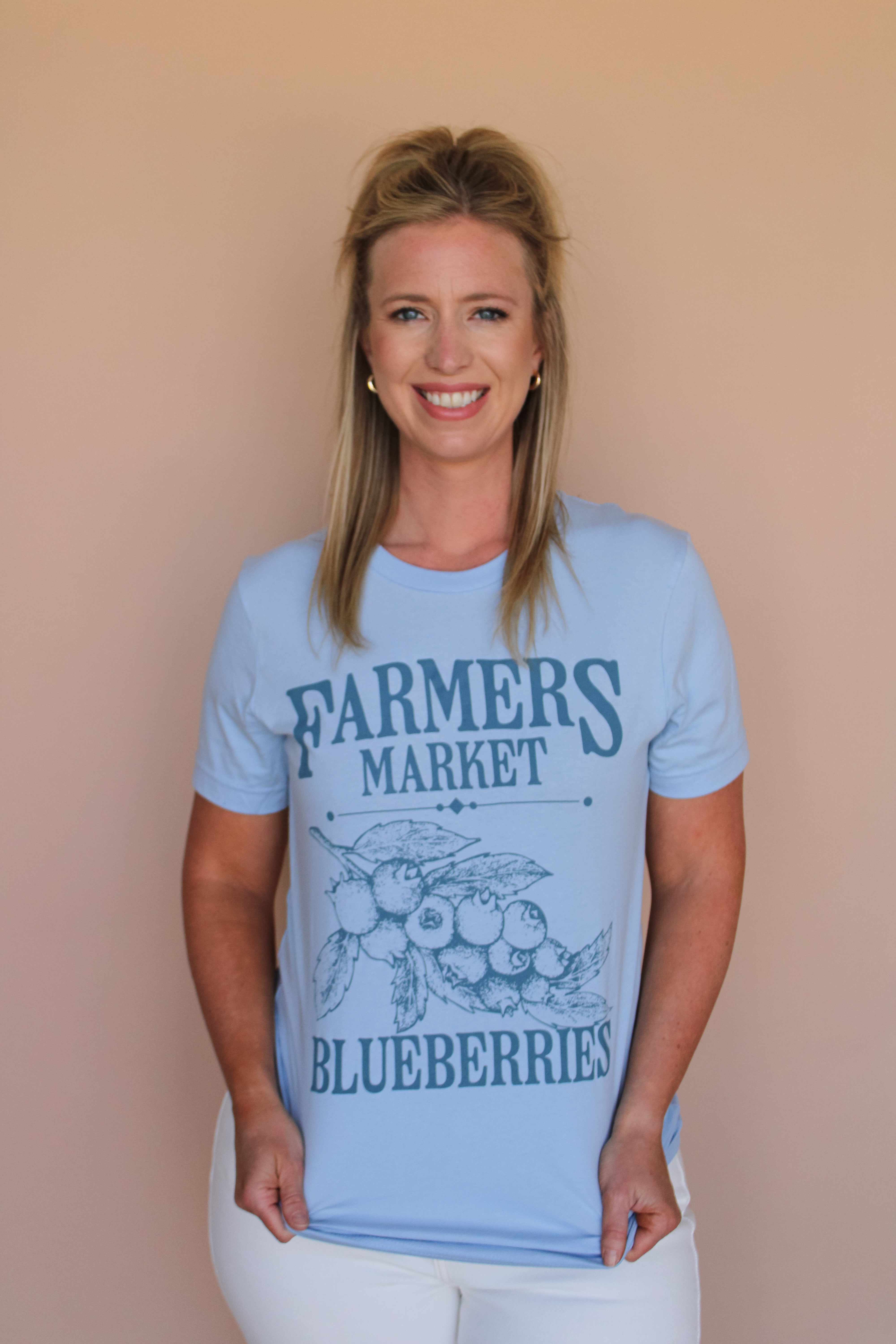 BLUEBERRIES FARMERS MARKET REG/CURVY GRAPHIC TEE
