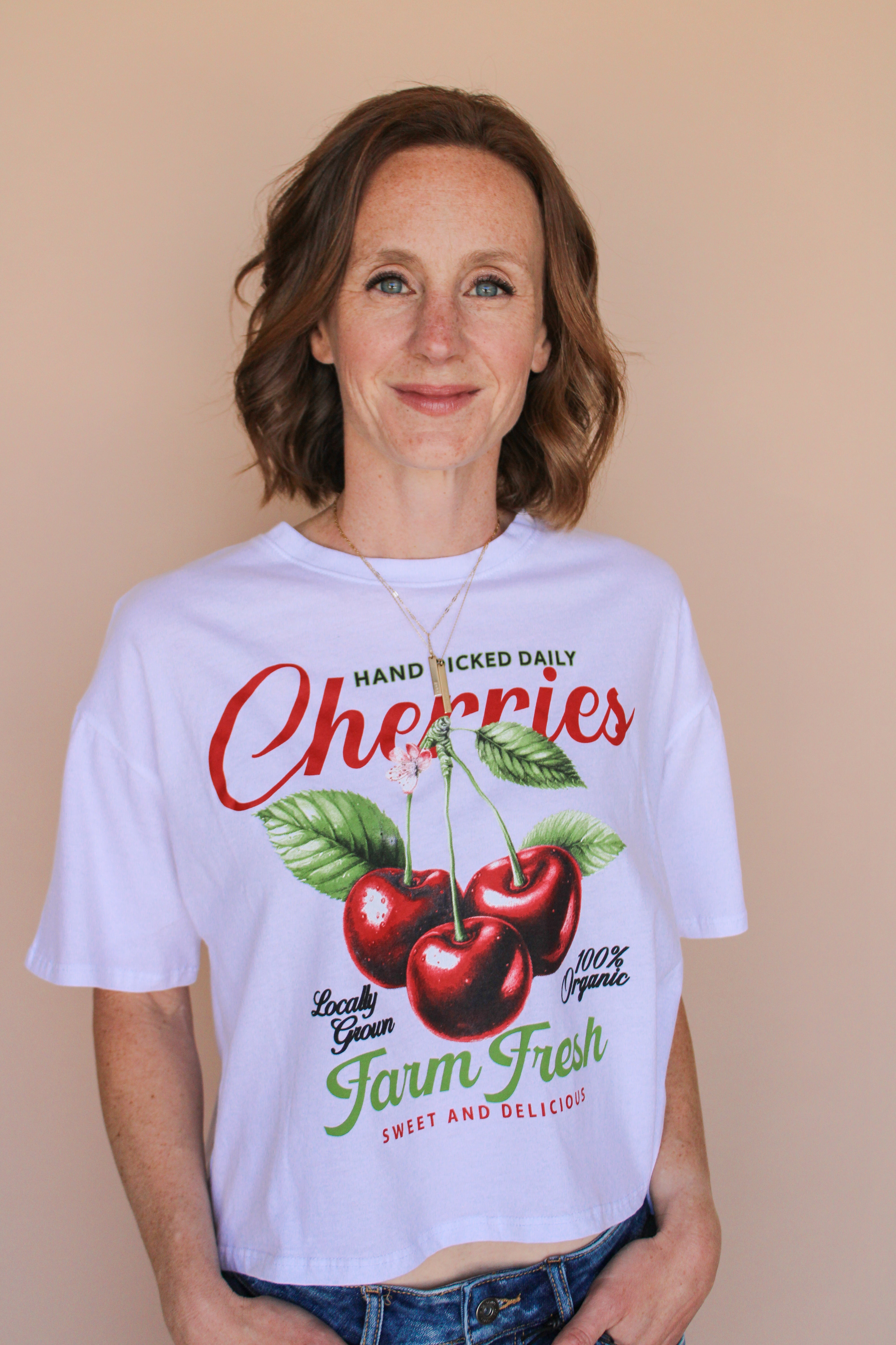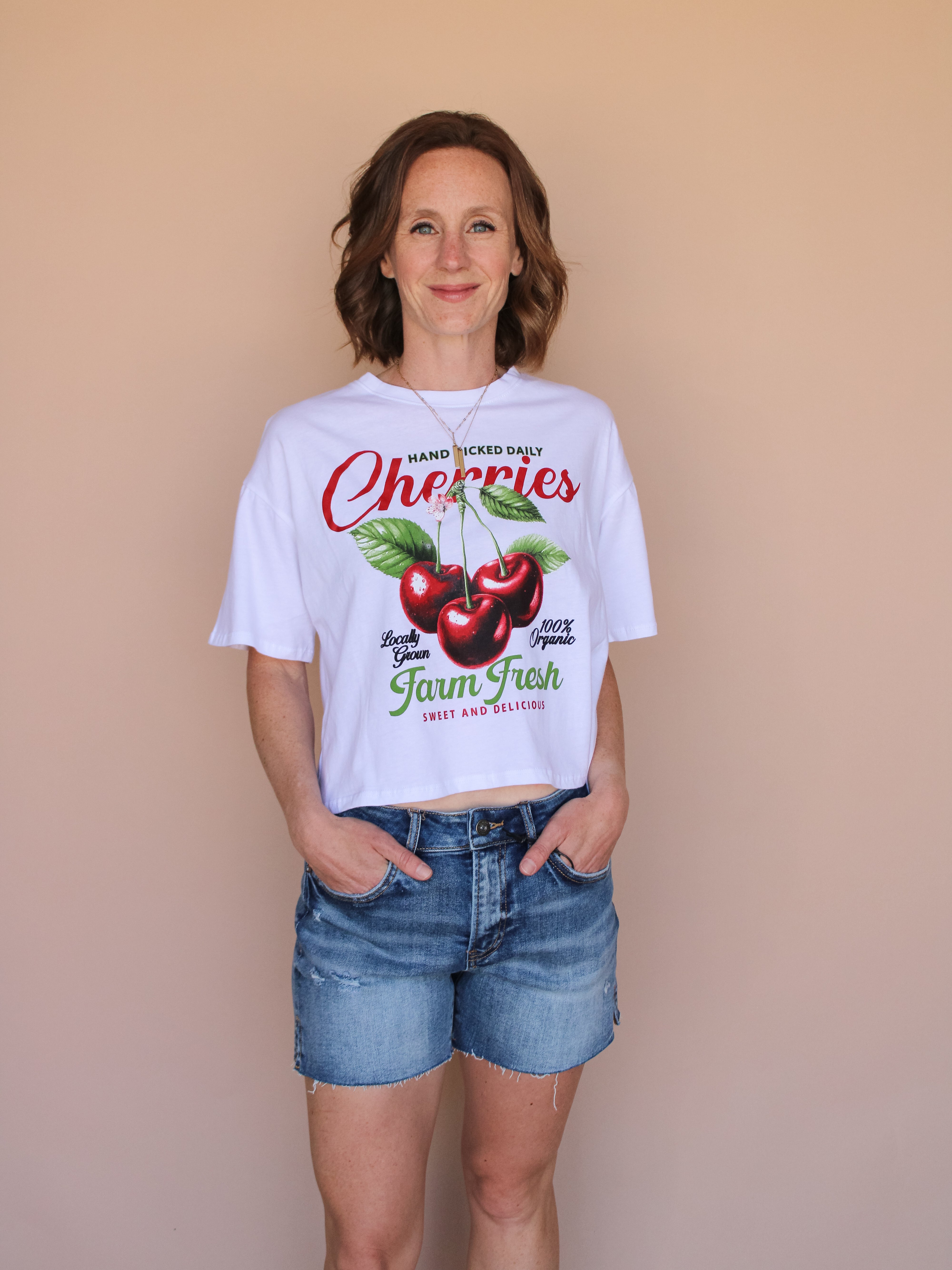 FARM FRESH CHERRIES GRAPHIC CROP TOP