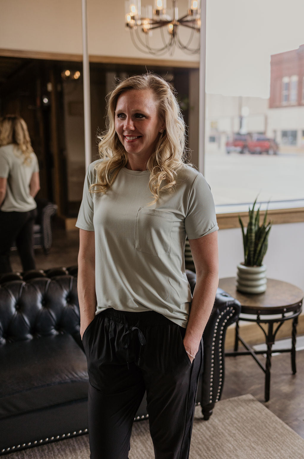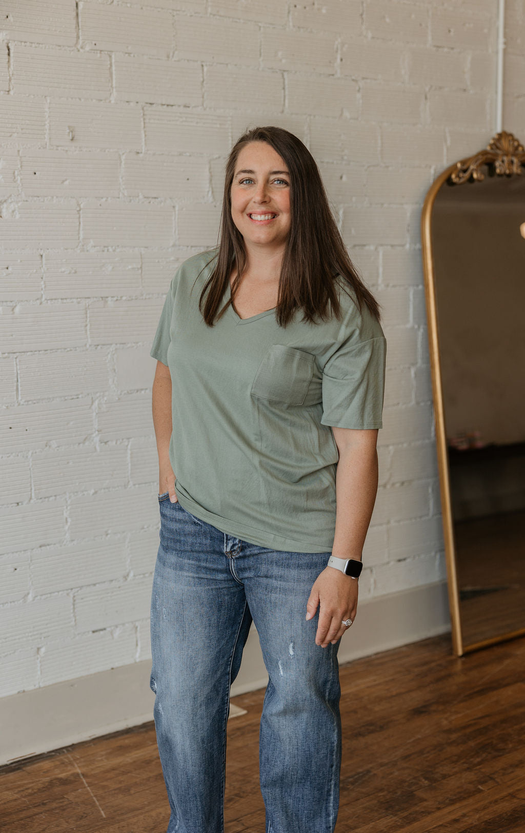 CHRISSA SAGE ROUND NECK POCKET TEE