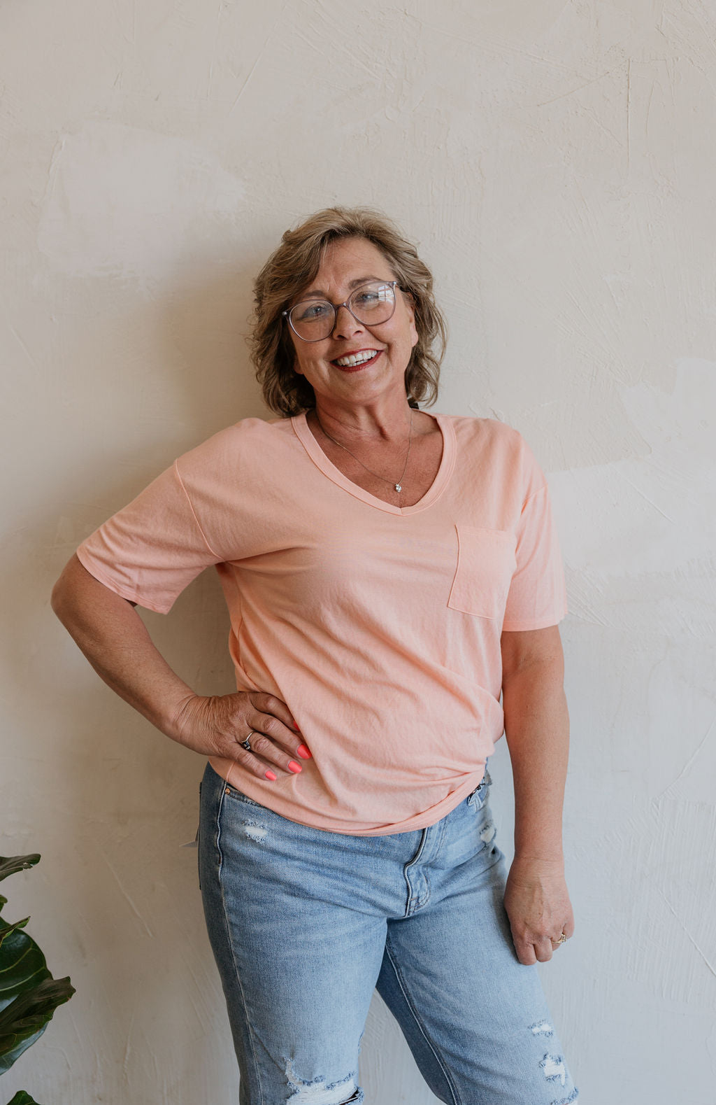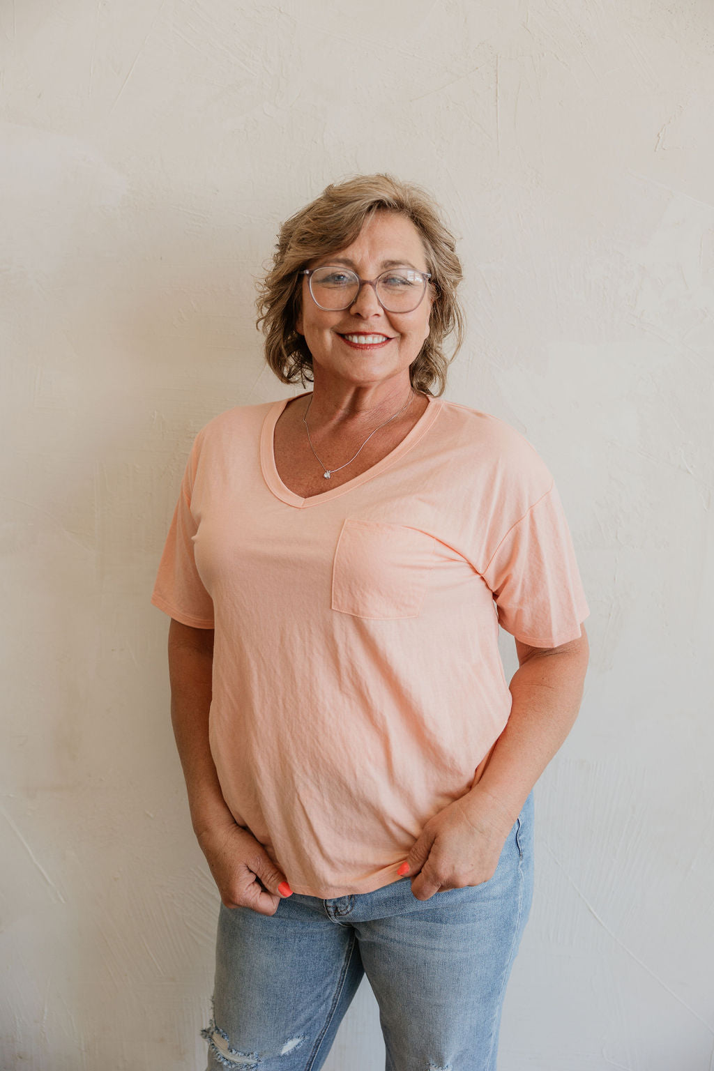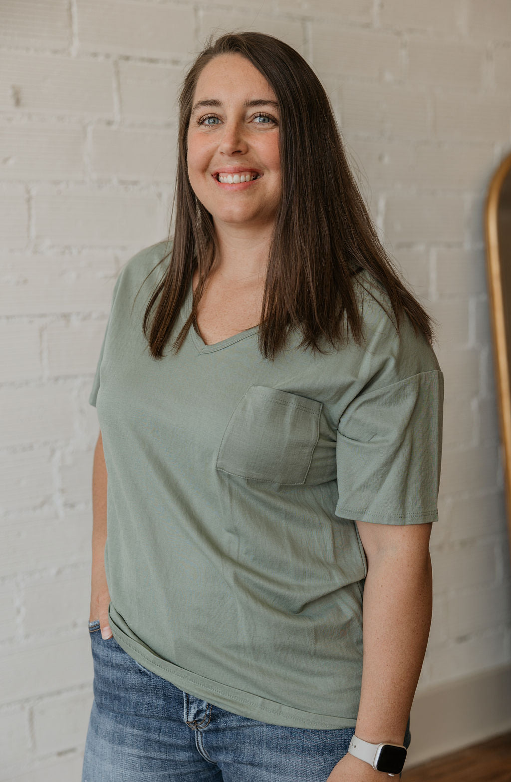 CHENEY VNECK TOP WITH POCKET DETAIL 2 COLOR OPTIONS