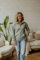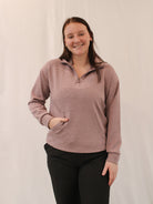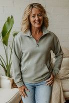Introducing the KEELY TOP - the sweatshirt you'll never want to take off! Made with a soft, smooth fabric, it's perfect for wearing everywhere. Its collar and half zip closure add a touch of elegance, while the boxy fit and front pouch pocket keep it functional. A must-have for any wardrobe.