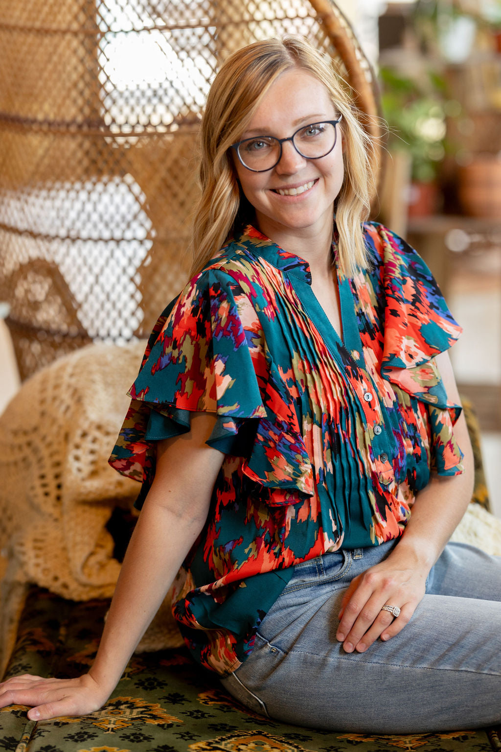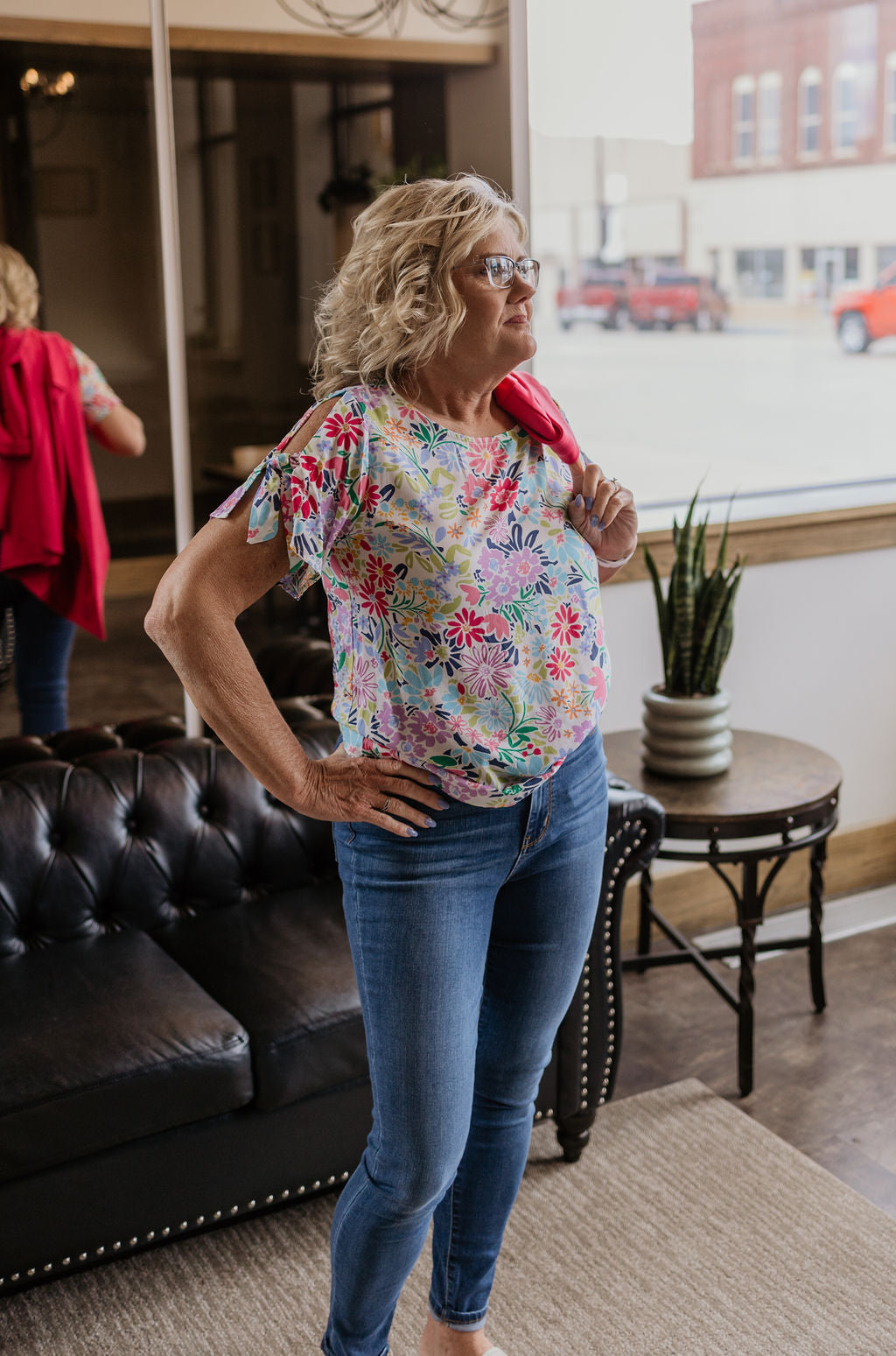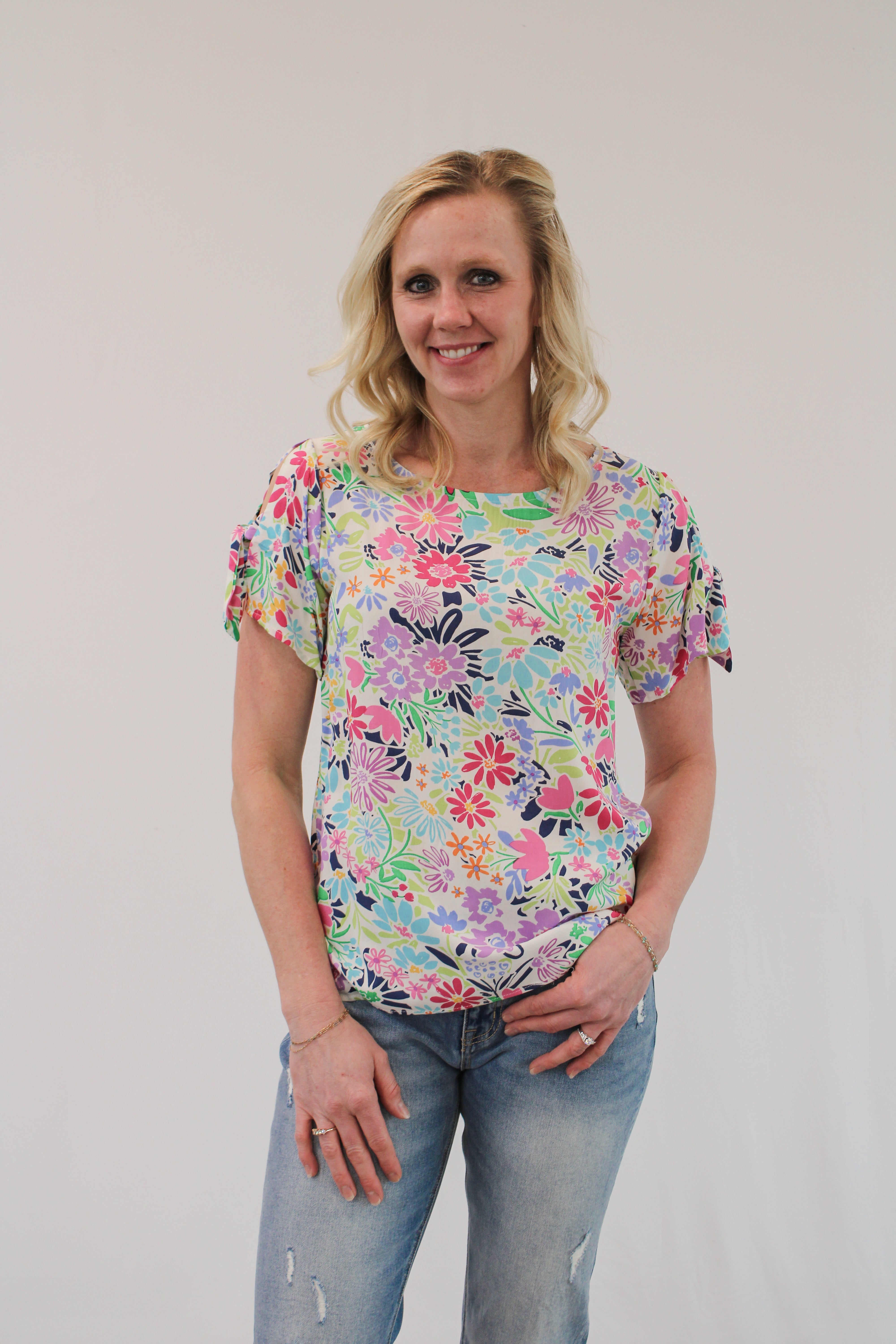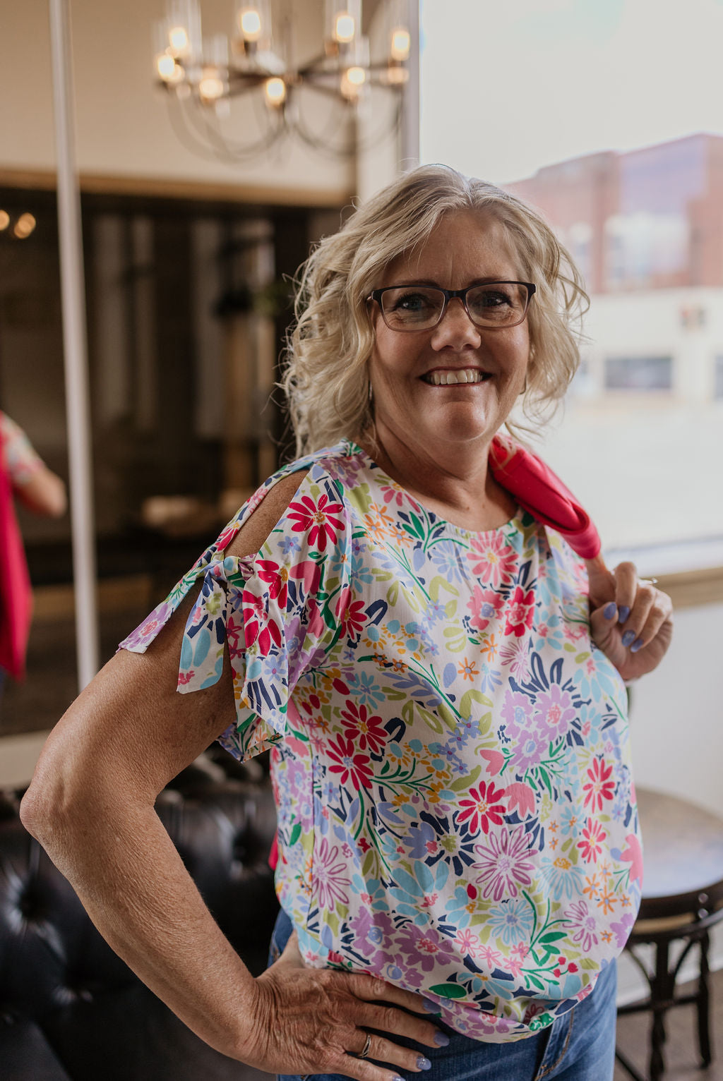 LARISA CURVY/REG FLORAL RUFFLE DETAIL BLOUSE