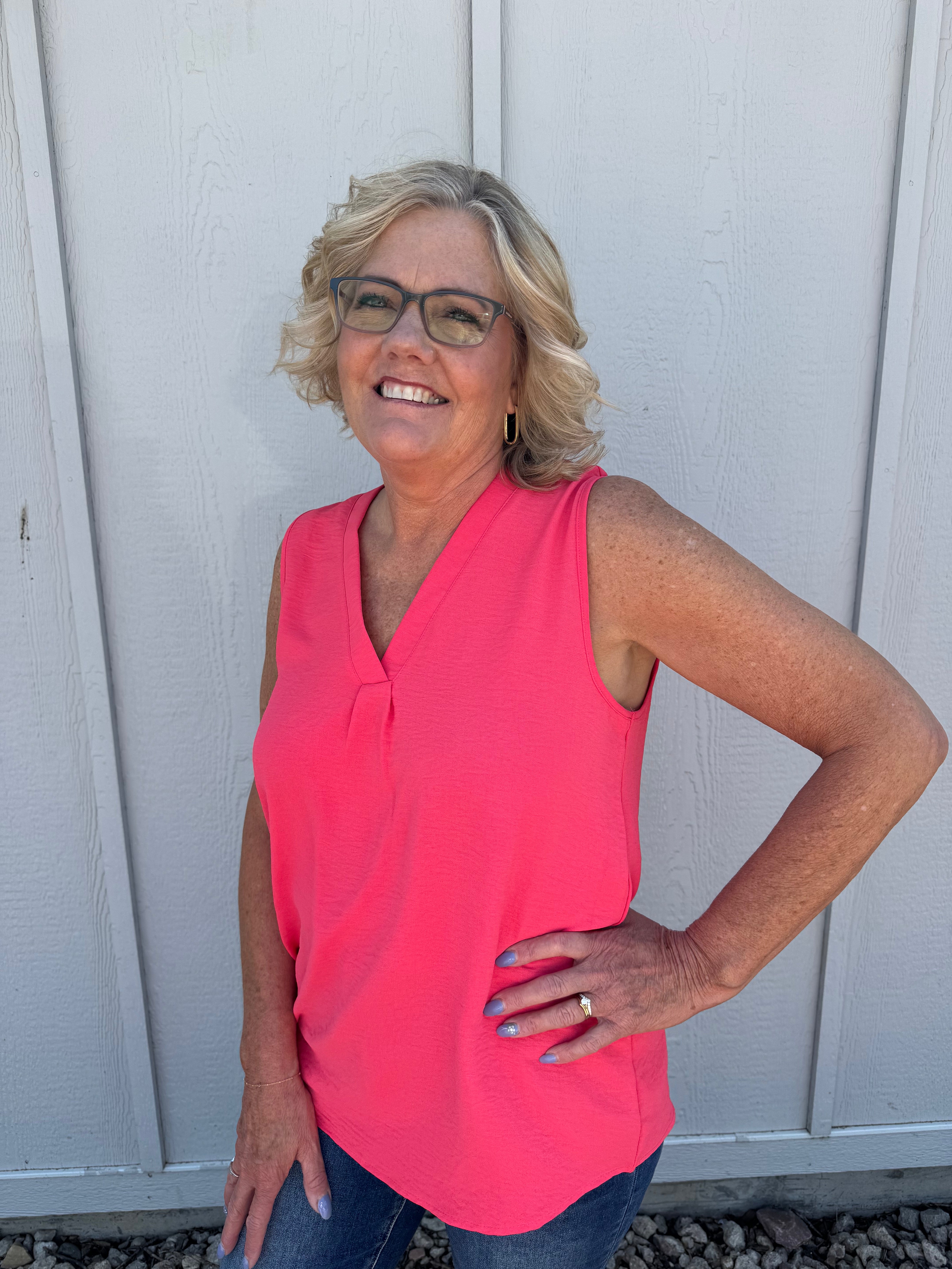 LEANDRA ORANGE AND BLUE BLOUSEY VNECK TANK TOP