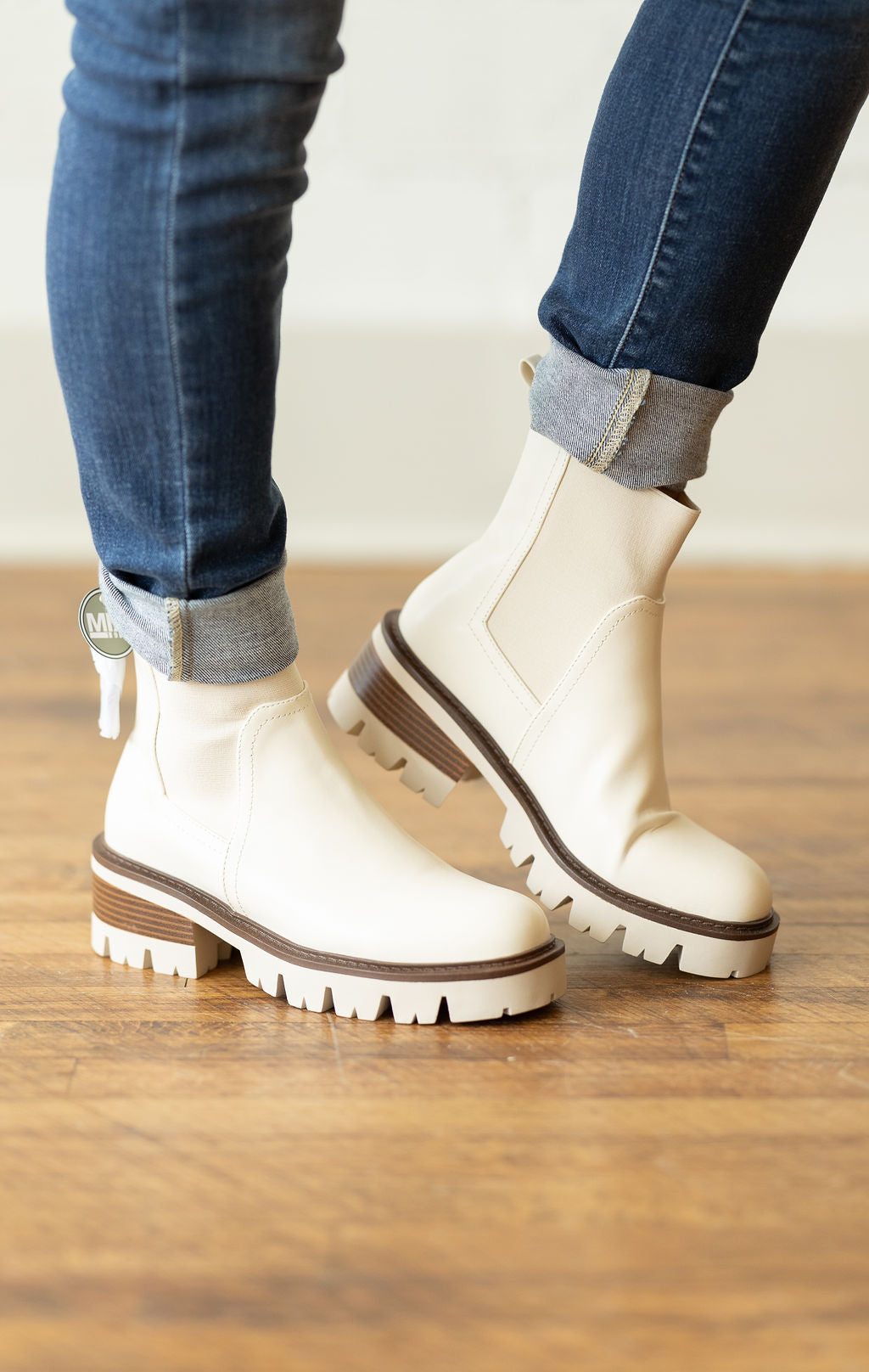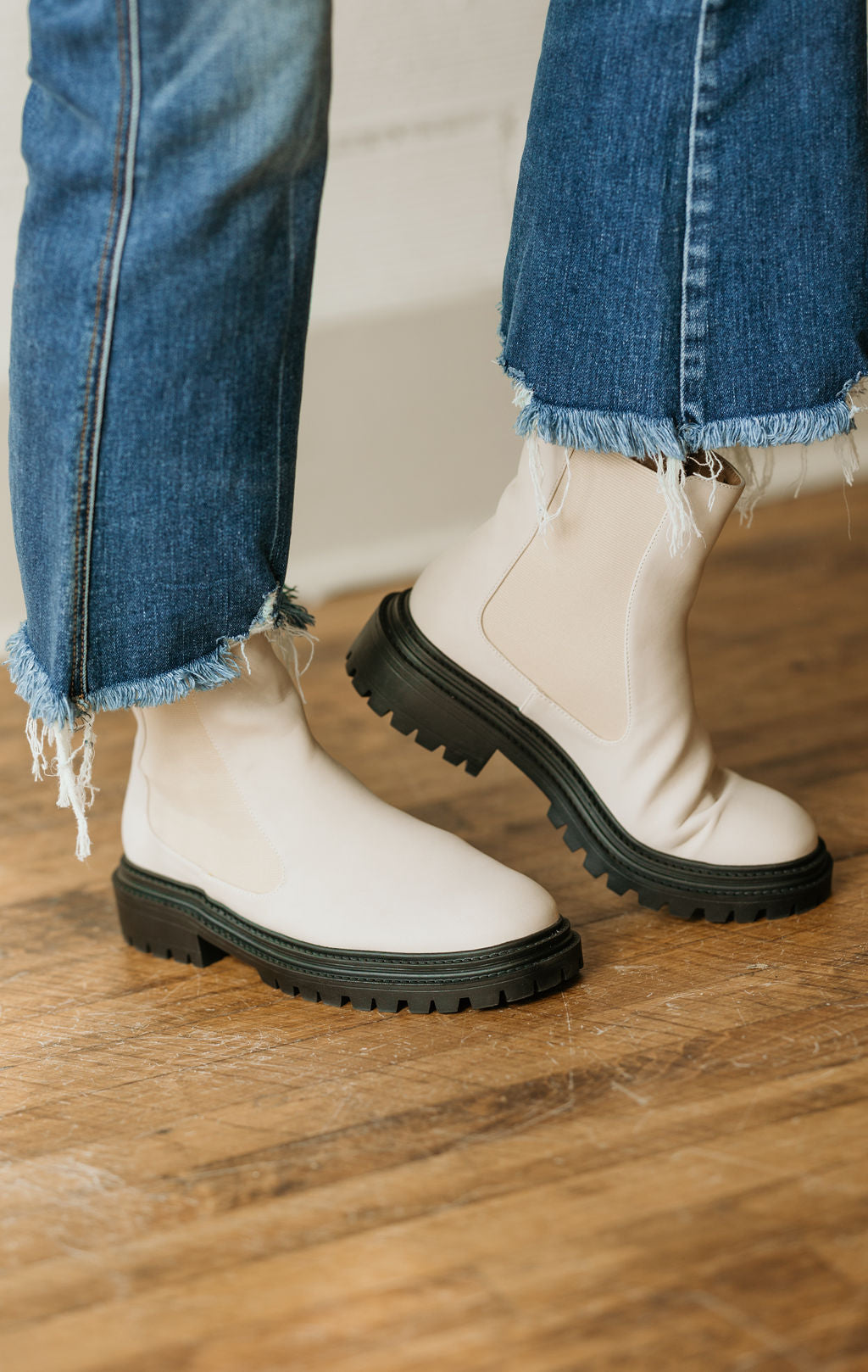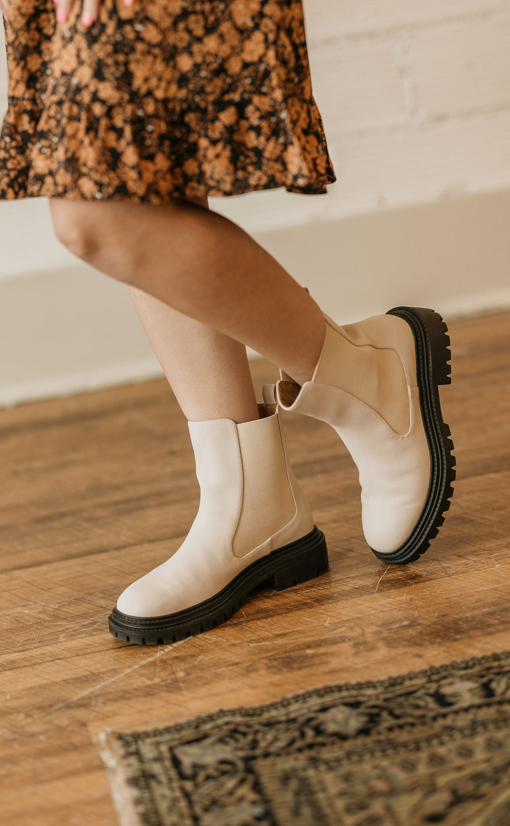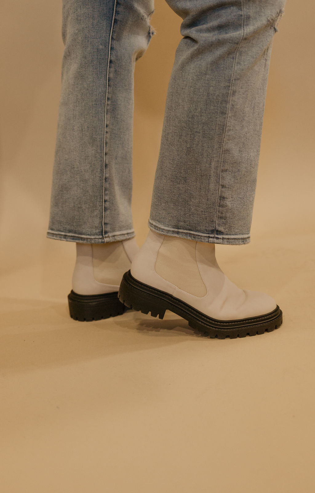 NESSA CREAM BOOTIE WITH BLACK SOLE