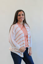 Look stylish and feel comfortable in our DEANA STRIPE DOLMAN CARDIGAN. The striped dolman sleeves and lightweight design make this 3/4 sleeve cardigan a must-have for any wardrobe. Made of 100% acrylic for a soft and cozy feel. Perfect for any season.