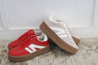 Step up your sneaker game with these faux patent low tops, featuring a unique mix of materials and a trendy lace-up design. The platform base adds some height while the stripe and color block details bring a pop of style. Walk with confidence on the synthetic outsole.