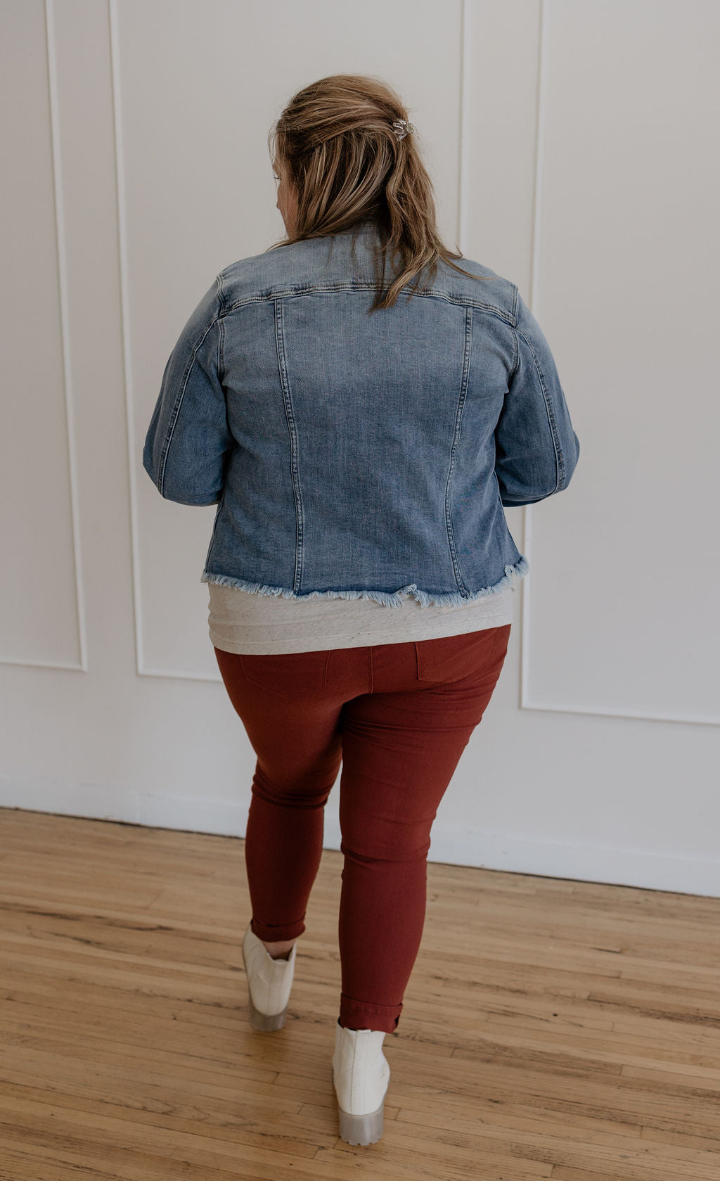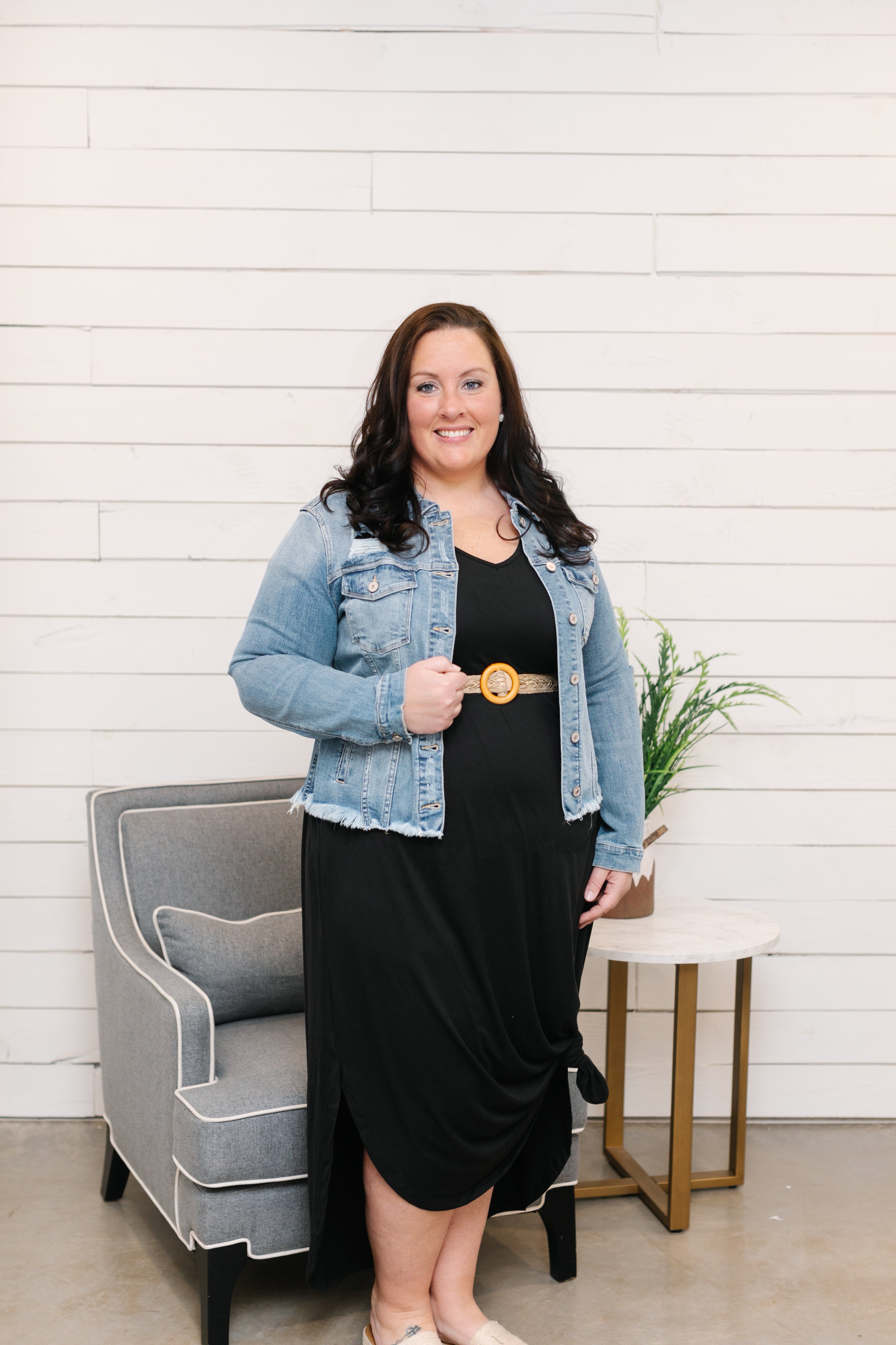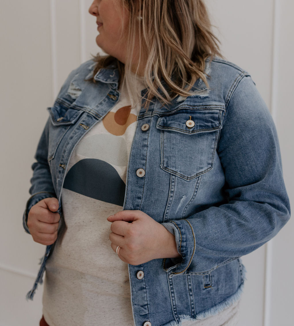 Dena curvy distressed denim jacket
