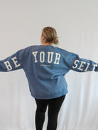 Get cozy and express your unique style with our BE YOUR SELF CURVY CREWNECK! Made with soft brushed knit fabric, this oversized top features a drop shoulder and long sleeves for ultimate comfort. The classic crewneck line and easy pull-over design make it a must-have for any wardrobe. Be yourself in style!