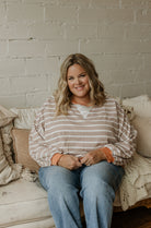 Get cozy with the Kaysha Drop Shoulder Striped Sweatshirt! This oversized crewneck offers loose-fit comfort with playful stripes and long sleeves perfect for layering or lounging. Its relaxed vibe makes it easy to wear all day while adding a fun twist to your casual look.