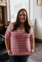 Say hello to sunshine with our KIT CURVY STRIPED COLLAR KNIT TOP. Stay cool and comfortable in 100% viscose fabric with a playful striped design and split neck collar. Perfect for those warm, breezy days. Add a pop of fun to your wardrobe today!