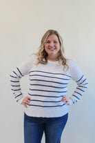 Stay casual and cool in our Marine Curvy Striped Pocket Sweater. Made with lightweight and breathable 60% cotton and 40% viscose, this sweater features a playful front pocket and trendy striped design. Perfect for a day out with friends or lounging at home.
