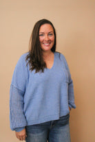 Embrace cozy vibes with this Reese sweater in a stunning denim hue. Its open knit sleeves add a breezy touch, while handy pockets keep your essentials close. Perfect for layering with a playful twist on comfort and style!