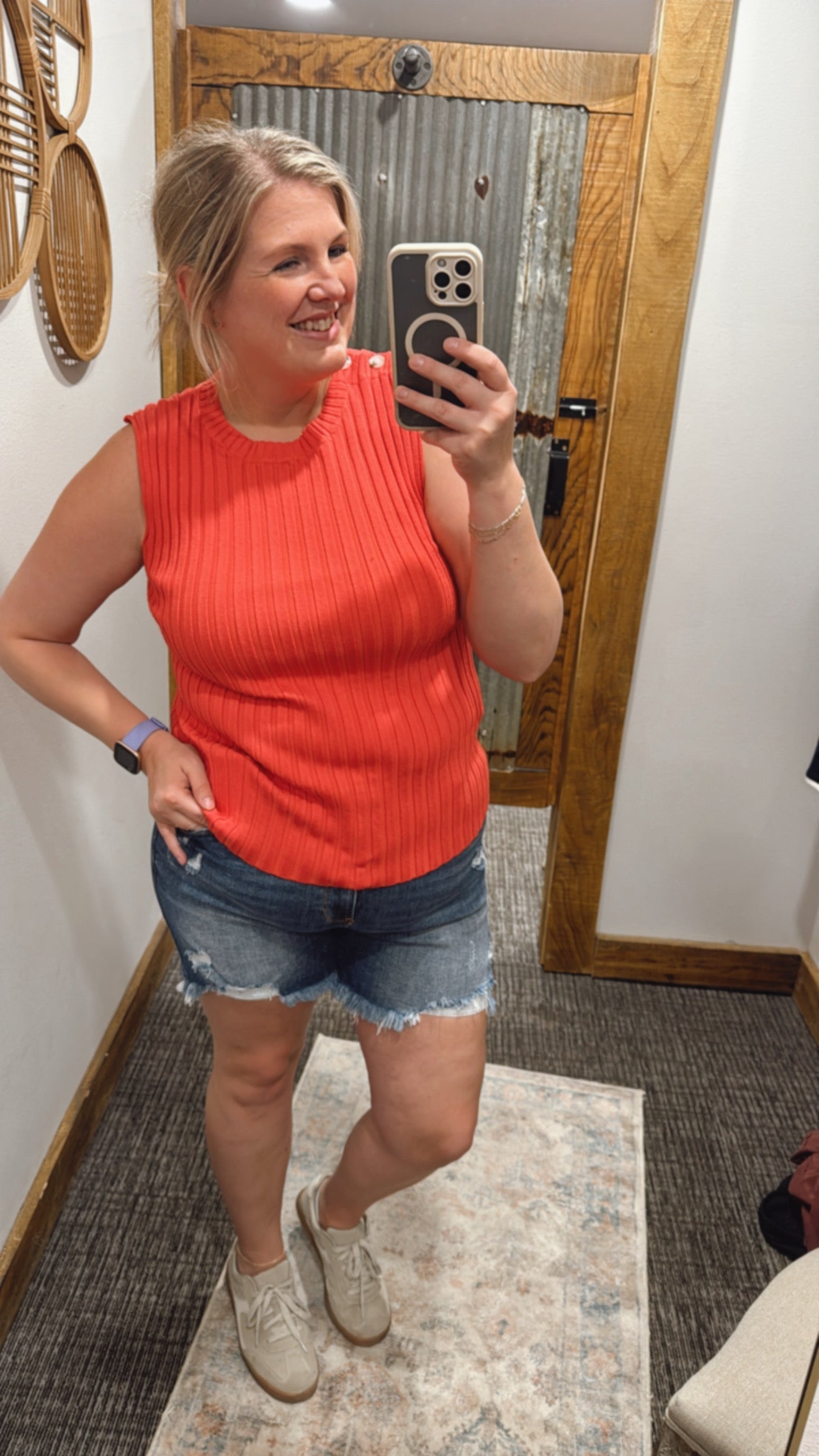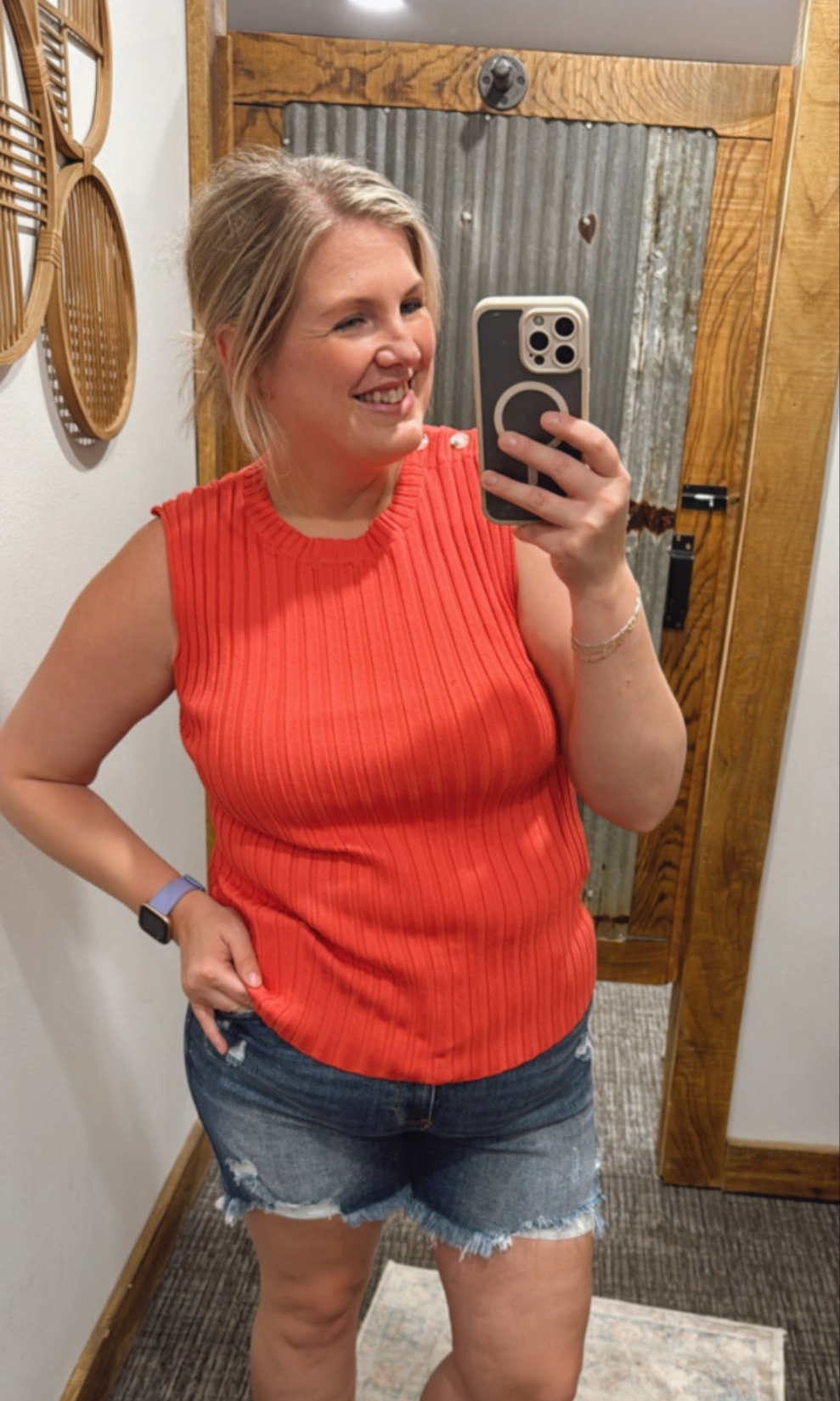 ELLEN CURVY BUTTON SHOULDER SWEATER TANK