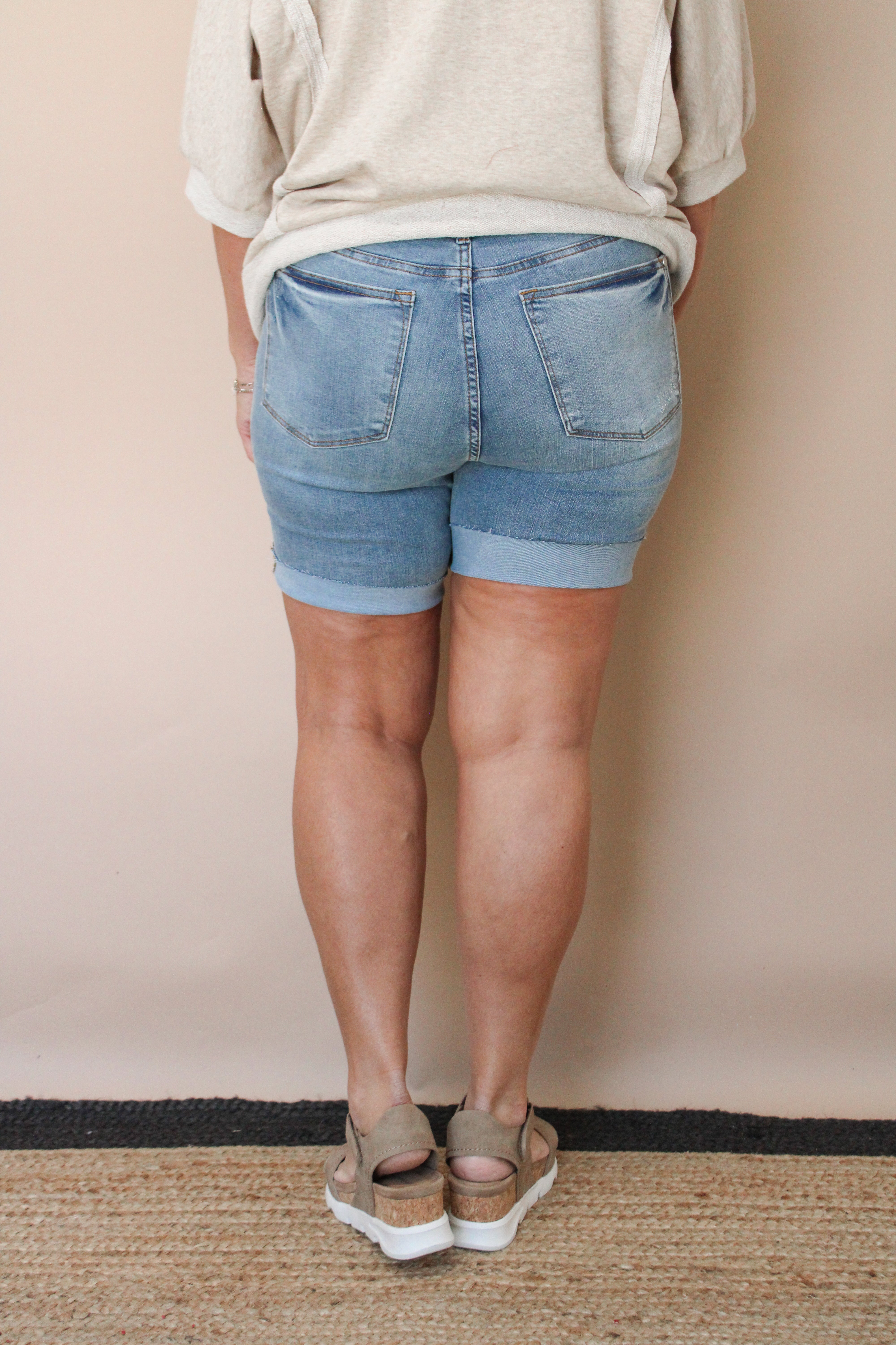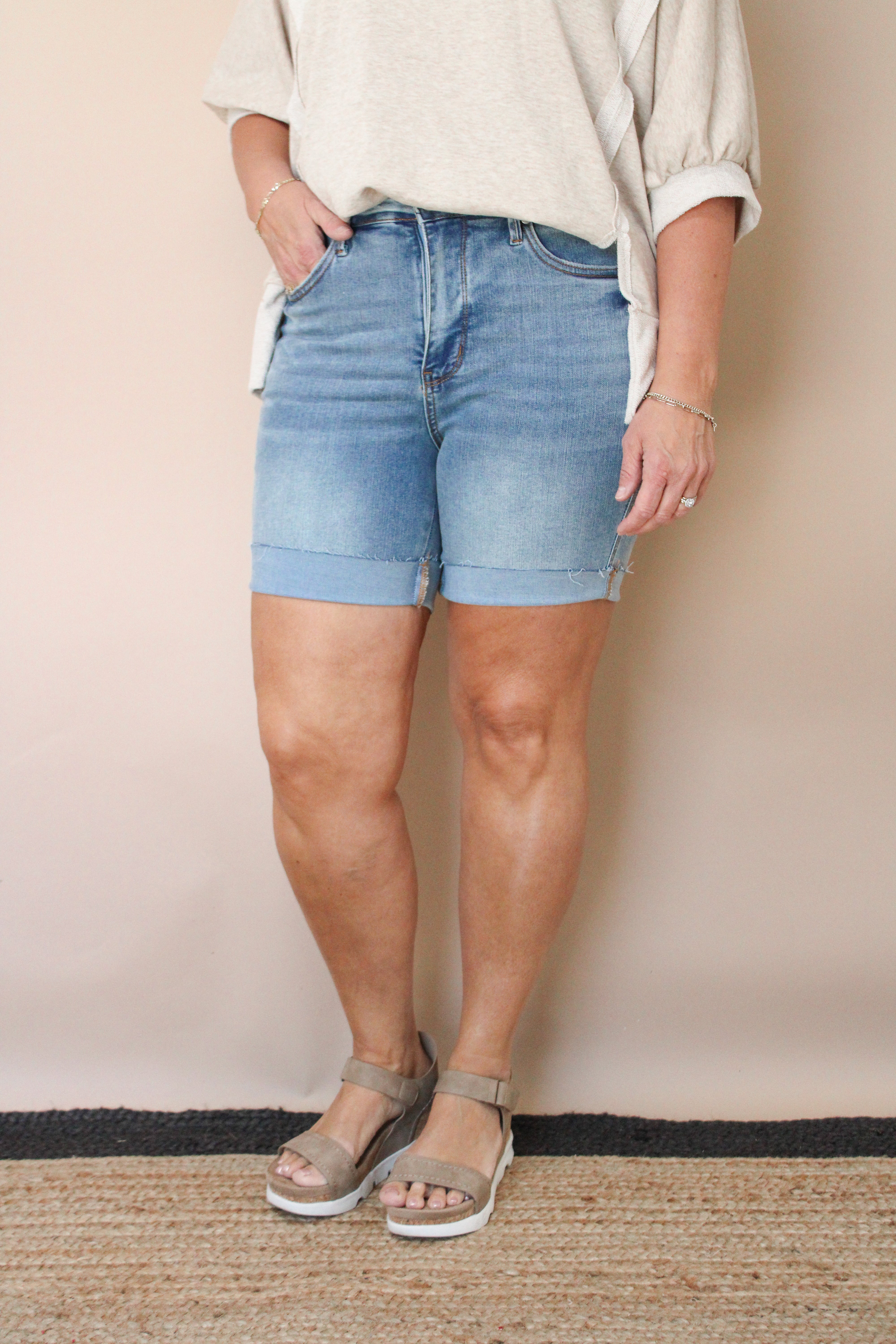JILL CURVY LIGHT WASH TUMMY CONTROL JEAN SHORTS
