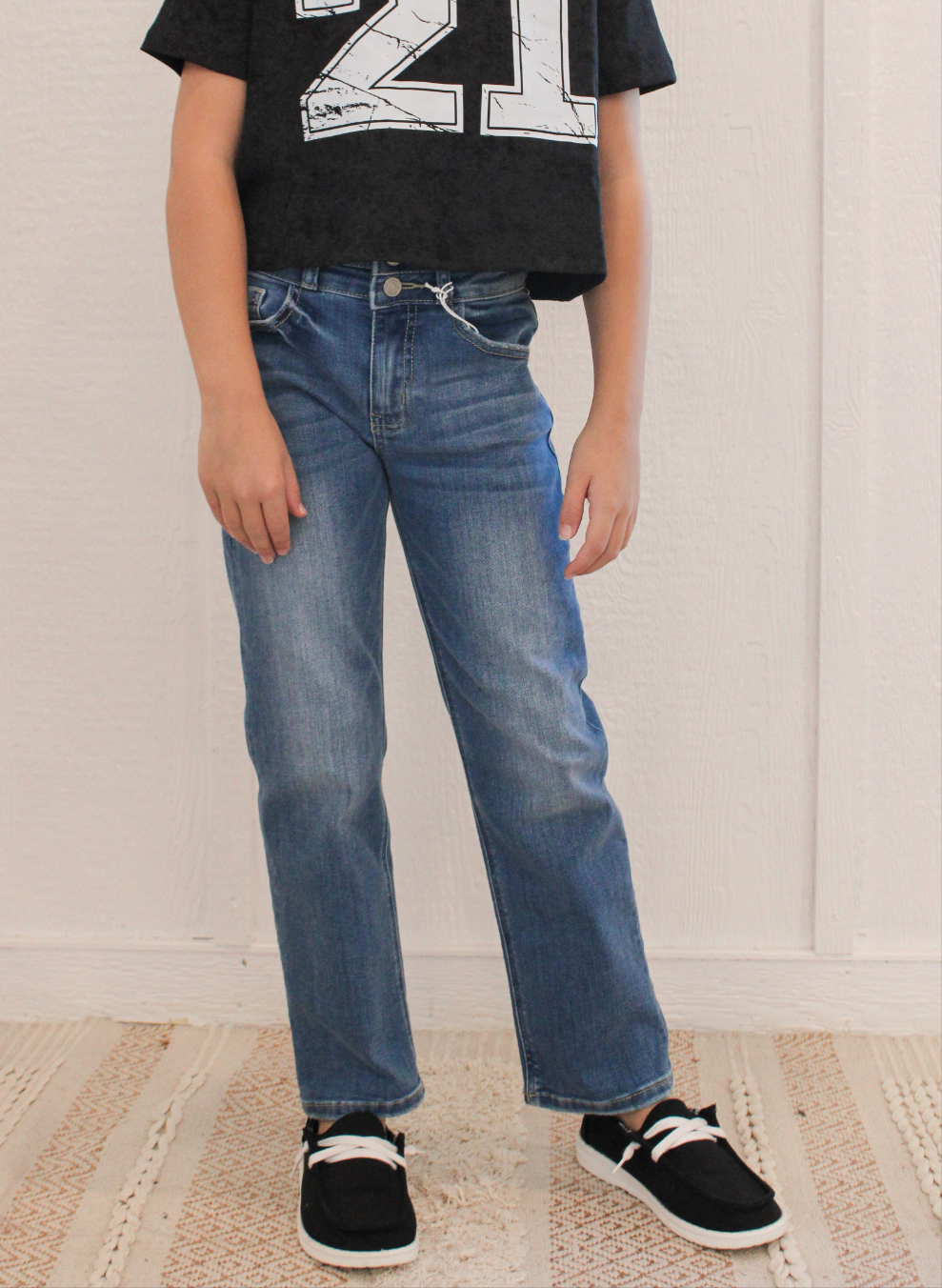 SHAYLEE GIRLS MEDIUM WASHED HIGH RISE MINI STRAIGHT JEANS